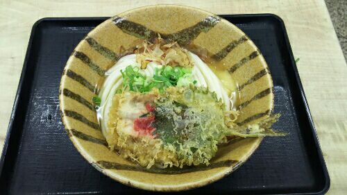 昨日は勉強会で岡山。昼食は駅地下街のセルフうどんいりこ。かけ大350円+いわしの梅しそ揚げ天120円。