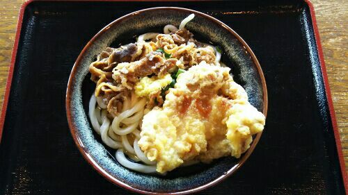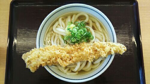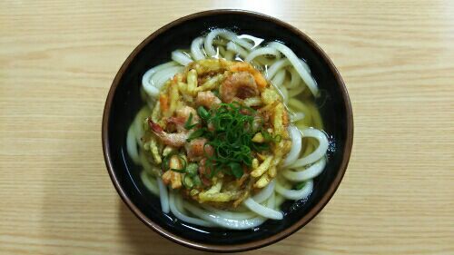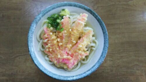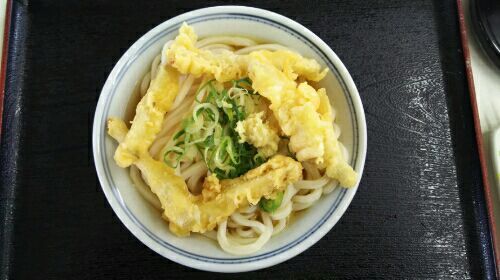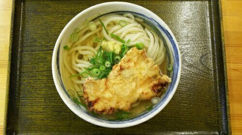 昨日の昼は、川西の土器川左岸コンビニあとの府中家丸亀店。 かけ中(2玉)310円+とり天100円。 店が異様に広い(笑)。