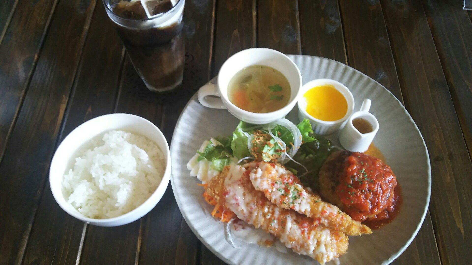 昨日の昼は、高瀬町の県道沿いの喫茶スピカプラス。おしゃれ系というより近所の人が集まる店。11種類から2種類選ぶタイムランチ700円。いつも食べているがやはりハンバーグにとりから揚げを選択。 おかず価格相応でちょっと小さめ。タイムに+100円のコーヒーはちゃんとしたサイズ。 なお、おかずを3種類選ぶと900円となる。