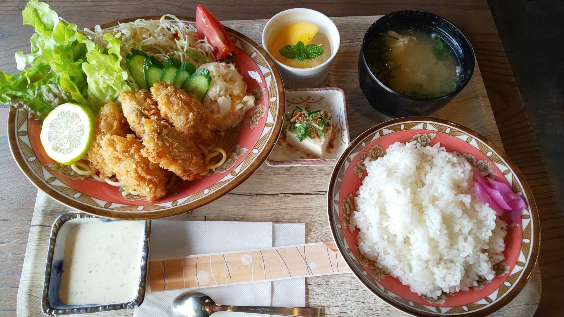 昨日の昼は、詫間との境の三野町のANYTIME COFFEE。1100円から1200円の4種のランチメニューからカキフライ1200円(飲物付き)を選択。 キャベツだけでなくポテトサラダが付いてるし、味噌汁には玉子が入ってる。価格だけのことはある。