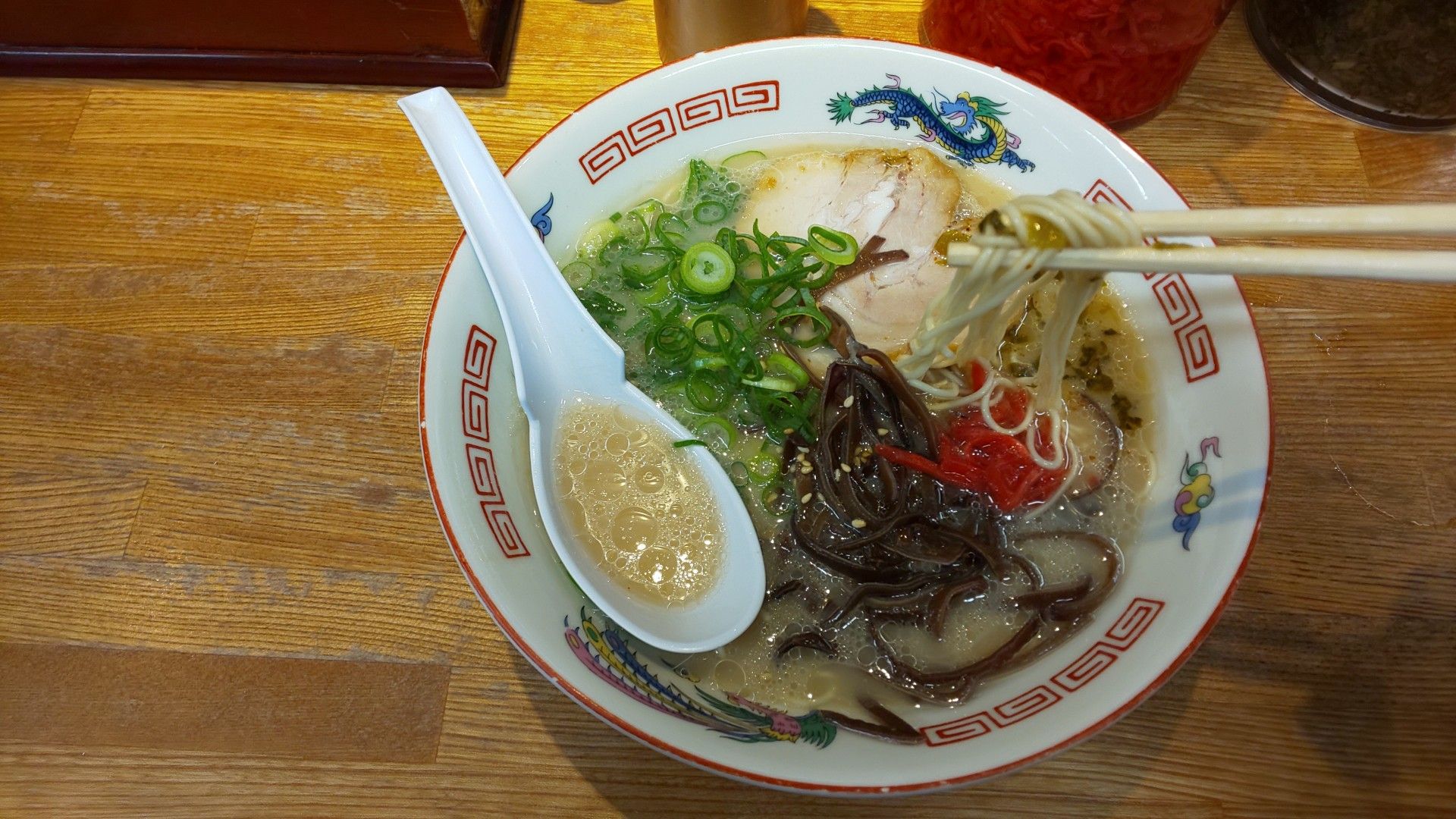 昨日の夜、山鹿から戻り博多駅前に着いたら、プ〜ンとラーメンの匂い。ホームの立ち食い、はかたラーメン。白旨550円と100円高い赤旨があったが、違いが分からなかったので白を。 私がイメージするままの博多ラーメン。まっ550円もするんだから。