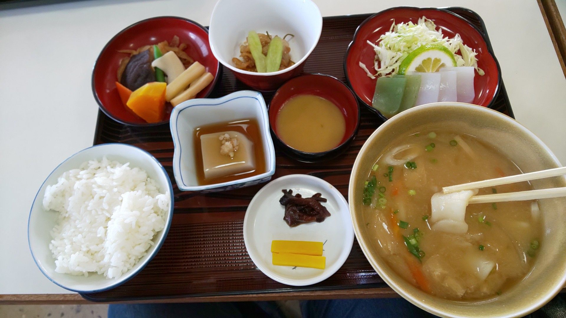昨日の昼食は、富貴寺門前の榧の木でバス料金とは別料金。だんご汁付の田舎定食1100円。 だんご汁はうどんの仲間かな。肉はないけど品数もあって、なかなか立派な食事。富貴寺拝観と食事で約1時間というのはあわただしい。