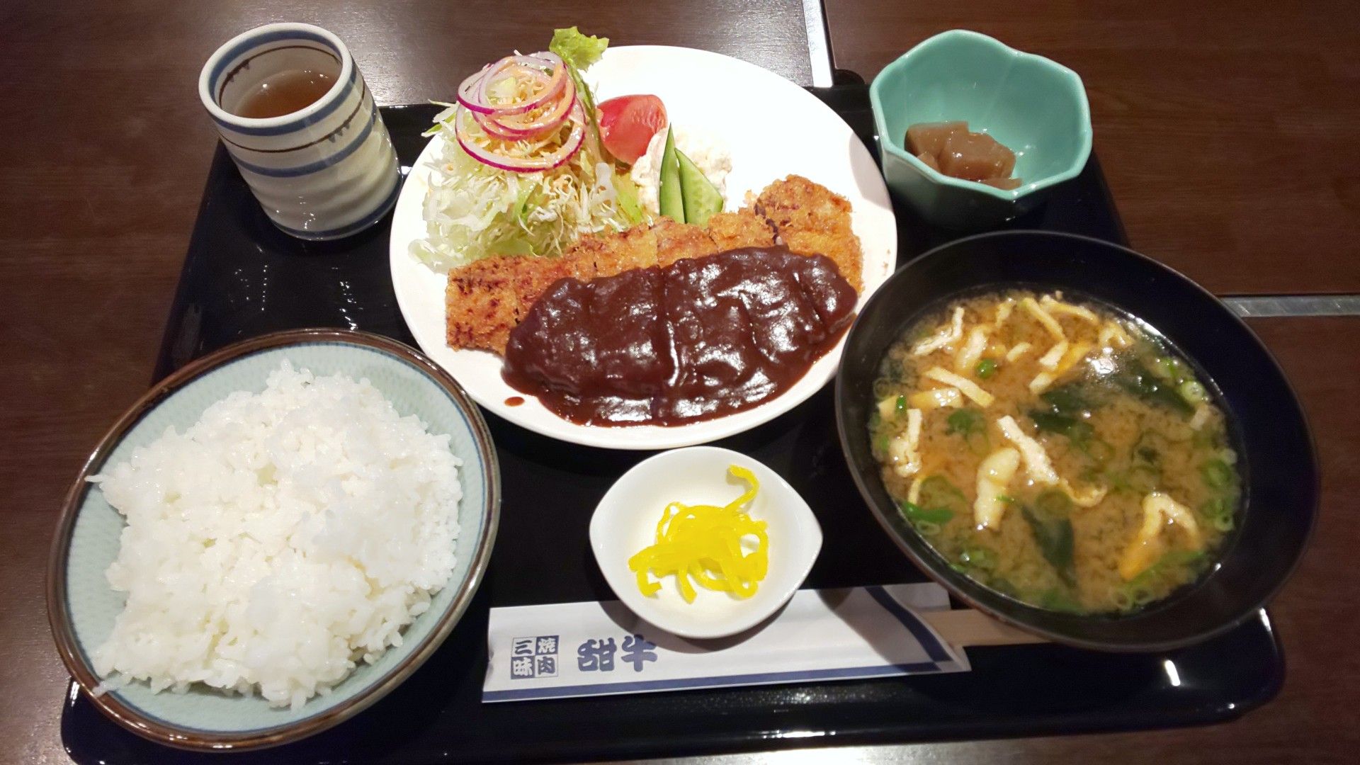 昨日の夜は、丸亀の甜牛。850円の夜定食6種からビーフカツ定食を選択。 カツもご飯も汁も大きく迫力がある。カツは硬いが牛カツを食べたことなどないからこれが標準かも。 水曜とはいえ客は少なかった。