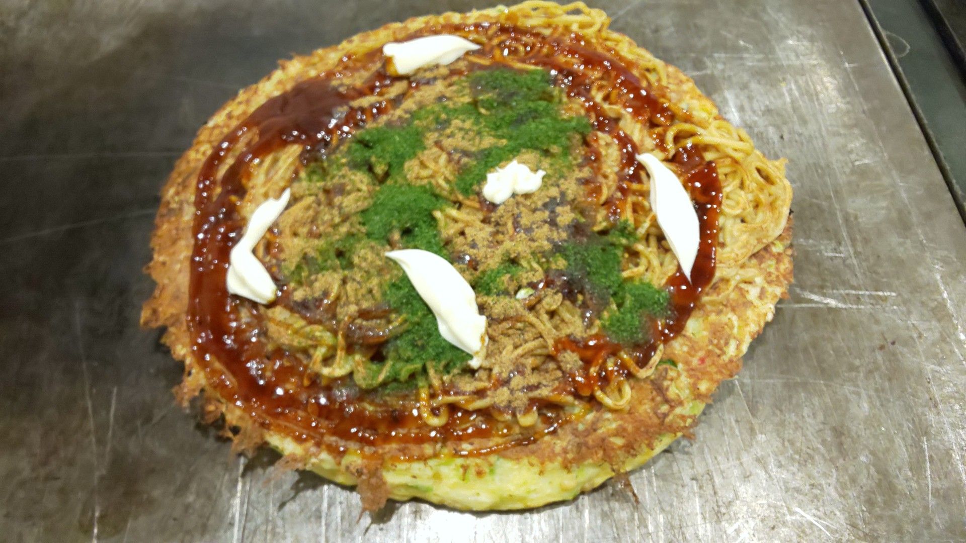 昨日の夜は飯野のケーブルハウス。凄く賑わってる。モダン豚玉790円(税別)+ジャンボ350円(税別)。 焼いてもらう。ふわっとしたお好み焼き。これはこれでありだが、私は固めに焼けたのが好きだ。