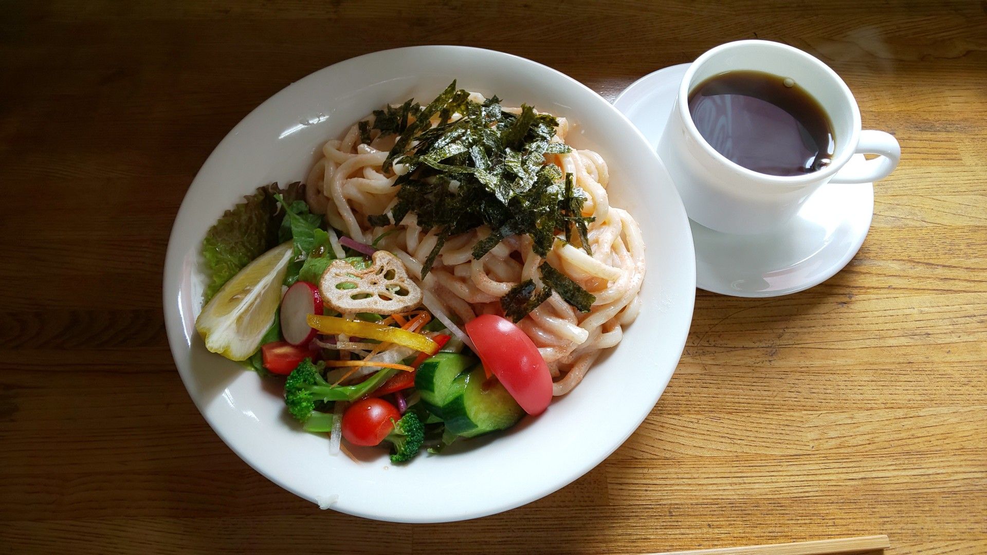 昨日の昼は、善通寺のちょっと奥まった住宅街にある手作りケーキとコーヒーのeco・cafe。限定ランチは売切れで、明太子うどん(飲物付)700円+大160円。 そこそこの固さと伸びがある麺。どうやって作ってるのだろうか? 外観と窓からの眺めはおしゃれじゃないけど(笑)。 うどんあります店に認定。