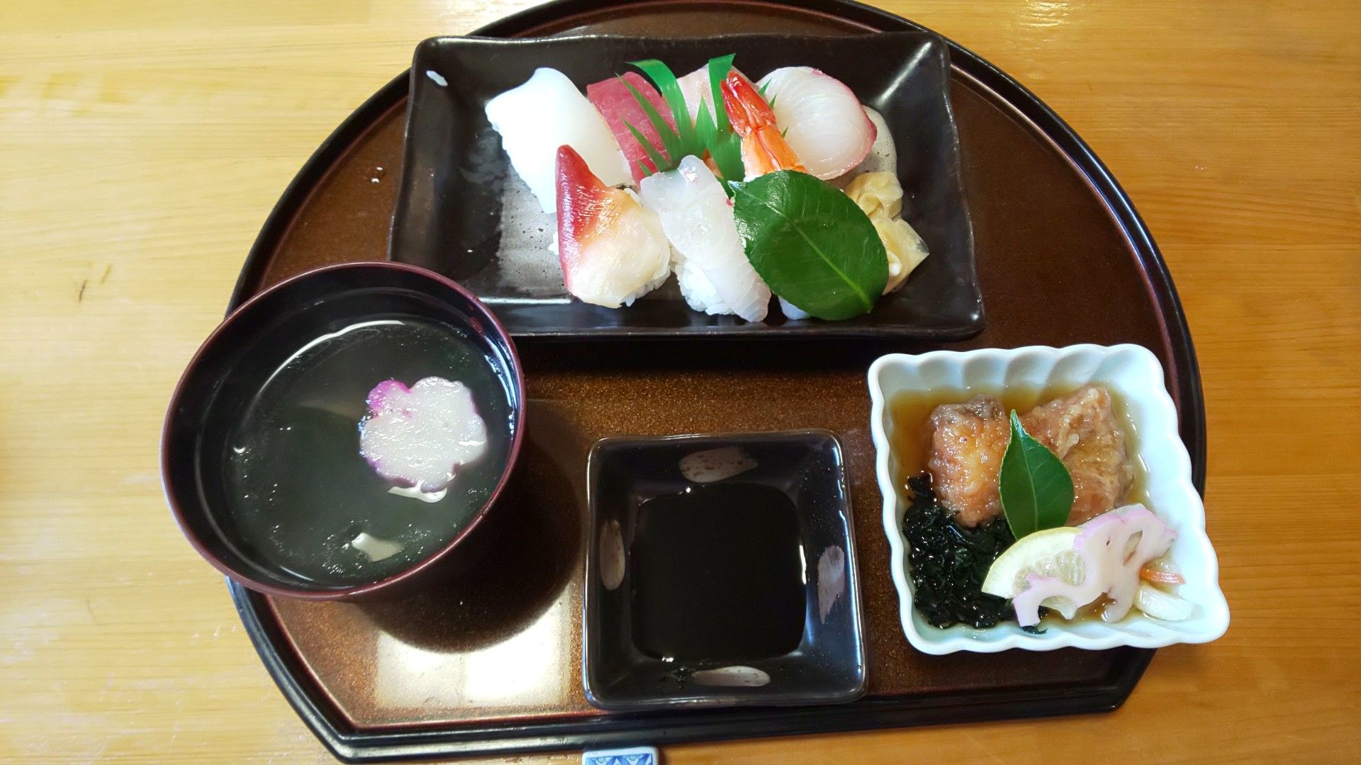 昨日の昼は、詫間町の浜街道沿いの寿司・天婦羅かつまや。お昼の寿司、海鮮丼、天丼の各セット880円から寿司を選択。 ちょっと小ぶりな寿司。高い膳にすればもちょっと豪華になるかもしれないけどまあ価格相応かな。