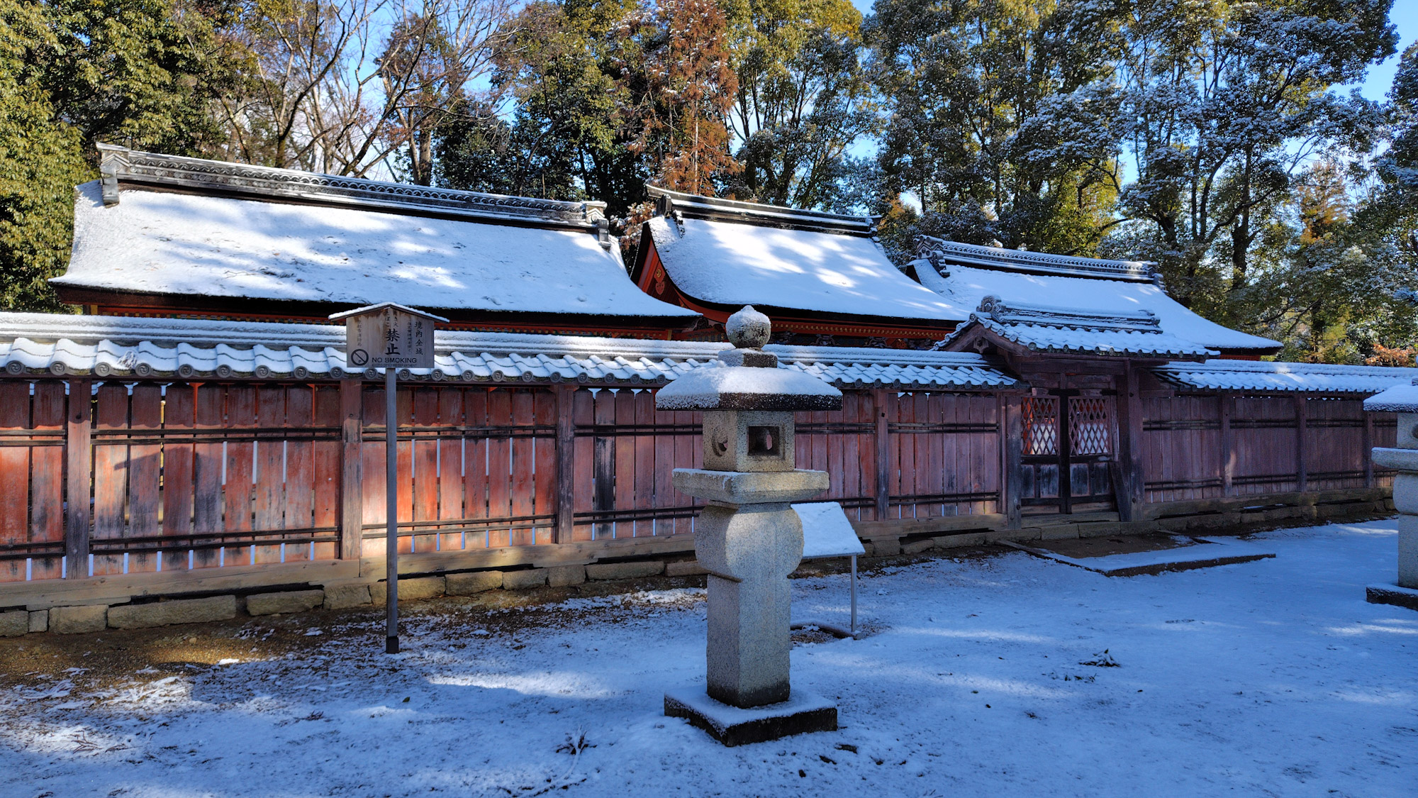 でも拝観が9時から、京の冬の旅は10時からなので先ずは仁和寺の鎮守神といわれる福王寺神社へ。雪が道にところどころ残ってるし、時折降ってくる中慎重に歩く。