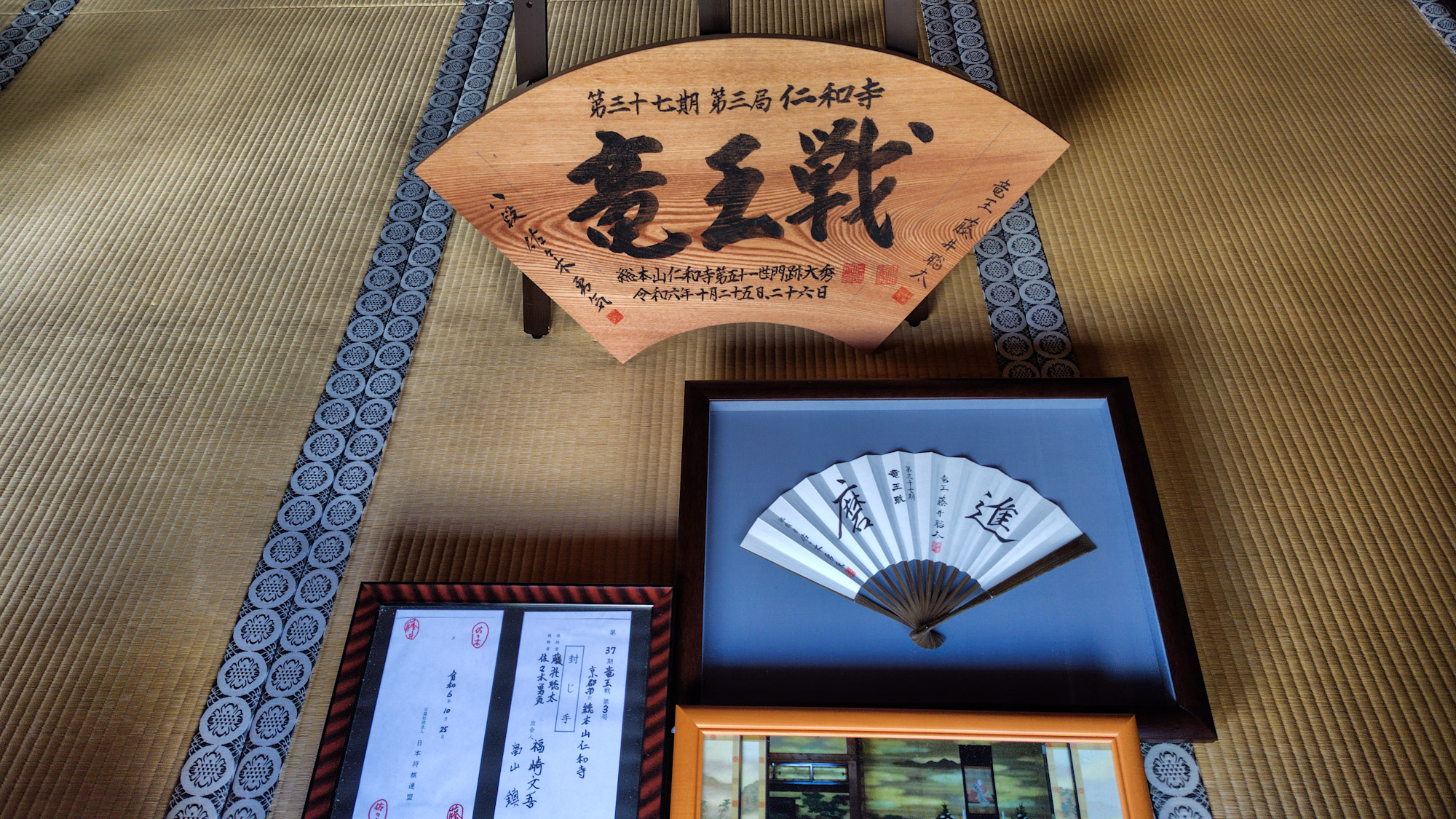 仁和寺は光孝天皇の発願、仁和4(888)年に宇多天皇によって建立された歴史も格式もある寺だが徒然草に「仁和寺にある法師」と兼好法師に小馬鹿にされている。今は竜王戦で有名。でも対局場の御殿は明治期に焼失、再建後の築年数が浅いので登録文化財。
