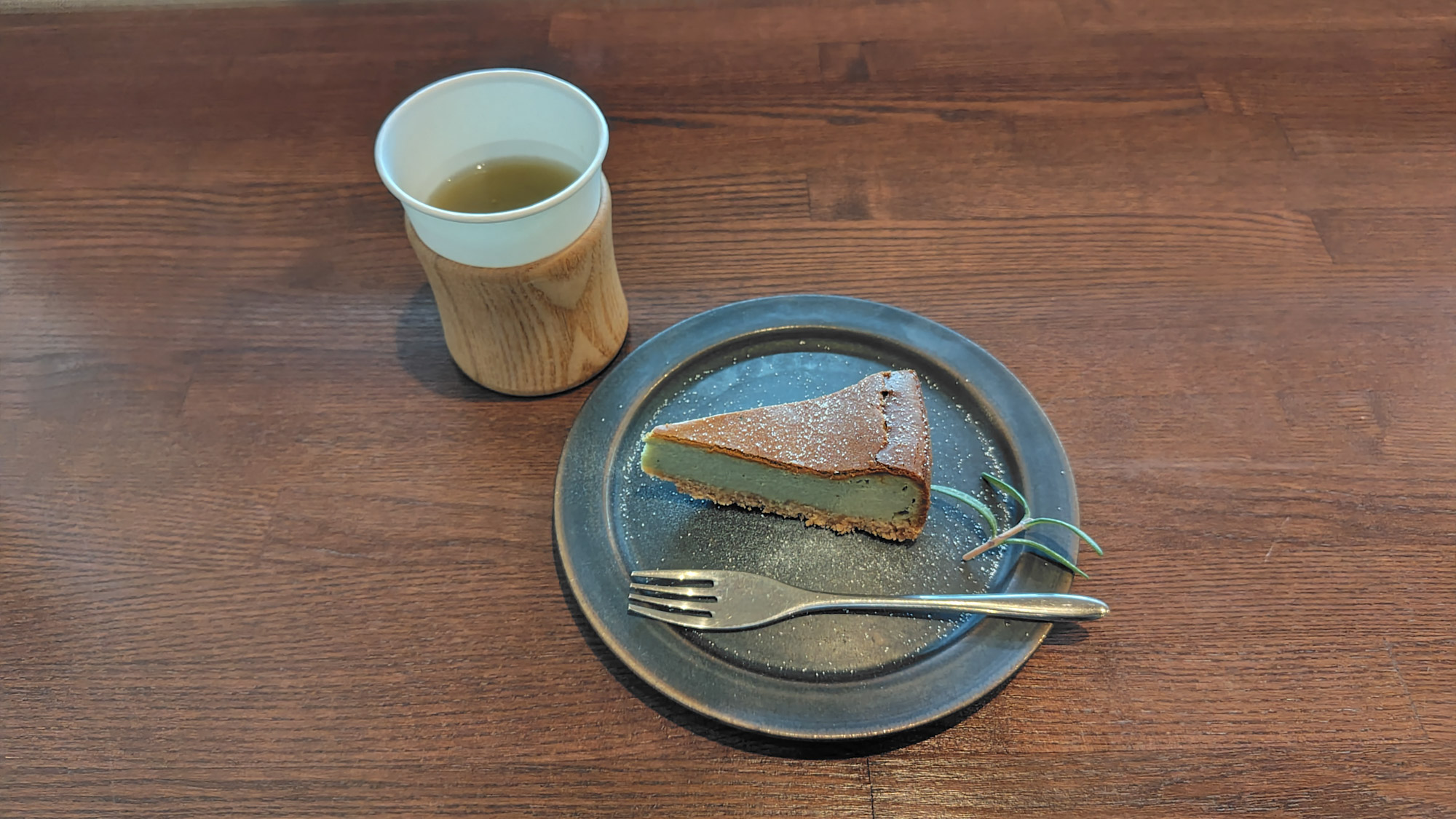 デザートも柿の葉を使ったもの。デザートのお茶は柿の粉茶。