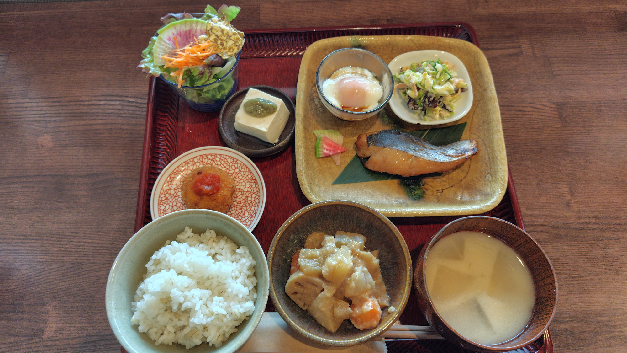 昨日の昼は、坂出市の居酒屋のランチ営業に、やっぱり休み。で本街道を走らせてたら、柿茶の店でランチやってるらしい、柿茶と自然食品の店かきのは。