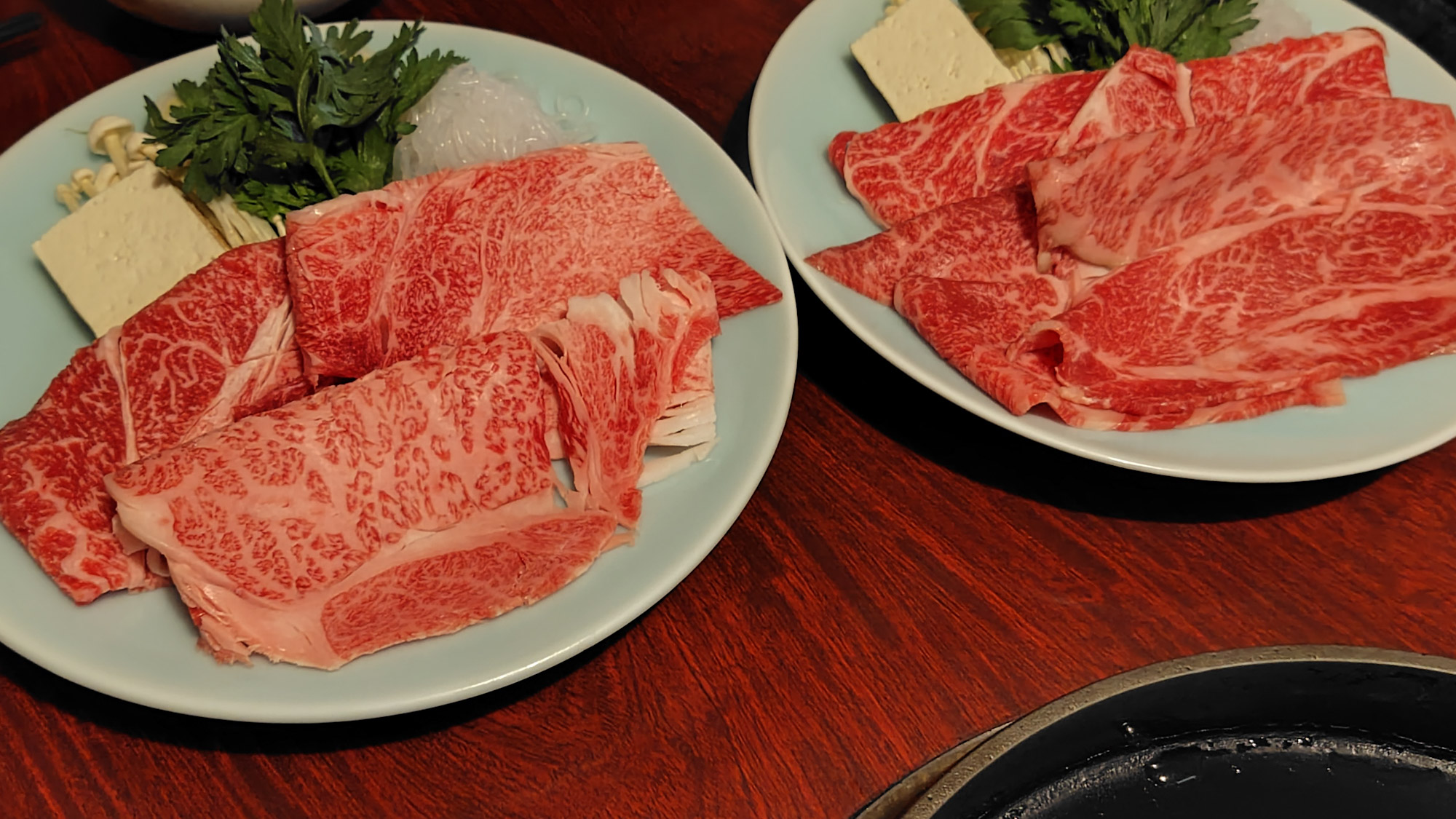 高い方が圧倒的に柔らかくとろけるようで美味しいけど、脂が多いかな。年寄りには安い方が合う。