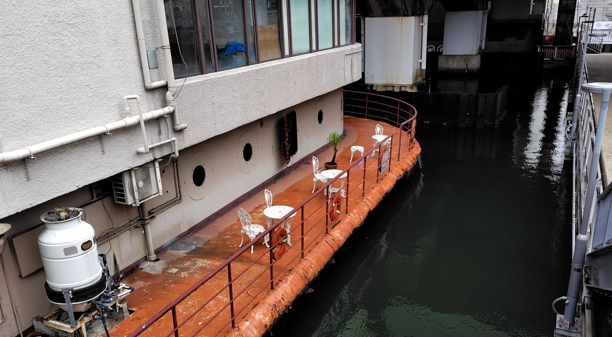 船に似てるというかほとんど道頓堀の喫水線上にある。メニューはあるが、注文はQRコードからだけで、支払いは現金のみという変なシステム(笑)。