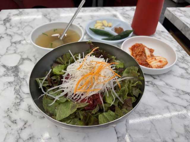 1日目の夕食は広蔵市場でユッケビビンバです。初めてユッケを食べましたが、魚のお刺身のお肉バージョンって感じですね。初めて食べたけれど、日本人はなぜか食べたことがあるような感覚のある食事でした。