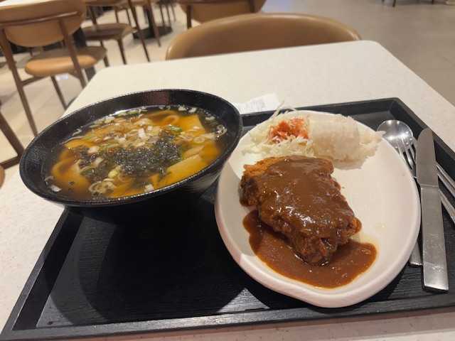 最後に仁川国際空港の地下一階のフードコートで食べた、うどんとミニトンカツ。