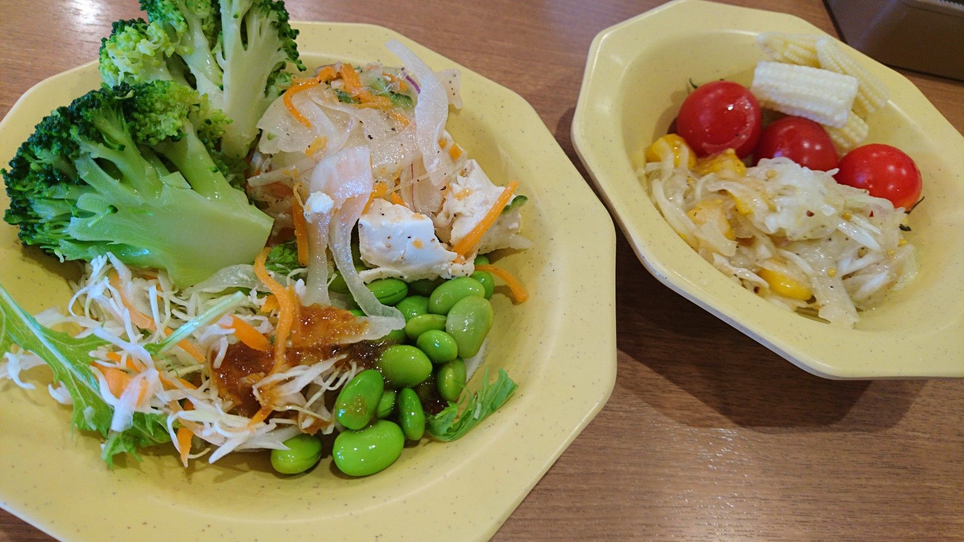 スパゲティの方はサラダバーのみ、ハンバーグの方にはバイキングセットを付けました