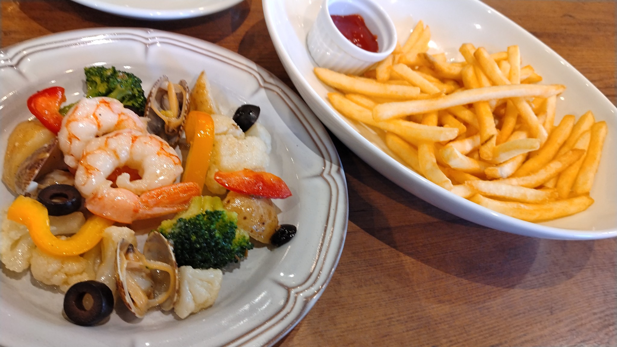 赤海老のマリネサラダ ナポリ風、フレンチフライ