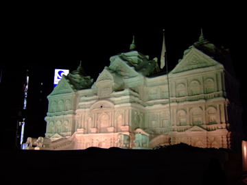 今日は夕方から雪祭に行ってきました(・∀・)家を出たときは雪がすんごい降ってたけど、大通に着いたら晴れててラッキー♪寒かったけど楽しかった(^^) 雪祭はやっぱり夜の方が綺麗ですね。大雪像 ようこそ!夢と魔法の王国へ大雪像 神秘大陸 南極の生き物たち 大雪像 国宝 彦根城大雪像 チャックリー・マハー・プラーサート宮殿テレビ塔がイルミネーションで綺麗♪氷像 ペンギンたちタモリ雪像。妙にリアルで怖い・・・(´Д`)ミルクランド北海道 元気くん今年は食べ物屋台がいっぱいでした~。エジシカバーガー!? 蕎麦や焼き鳥、スープカレー、ラーメンと何でも揃ってました。りらっくまコレクション! 今年はりらっくまの雪像がいっぱいありましたよ~(^^)どれも微妙な出来具合・・・