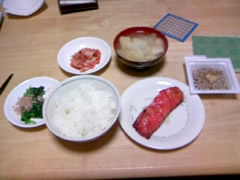 相方入院中で、自炊をしたり外食したりな毎日です(^^)ここ最近はお弁当も頑張って作ってるよ~。冷凍モノが多いけど・・・。今日も会社帰りに着替を届けに病院に行ってきまました。まぁそこそこ元気な感じ。あと2~3日したら個室から大部屋に移動になるかもしれません。退院までまだあとちょっとかかりそうなかなぁ~。相方に写メールするのに晩御飯をよく携帯でパシャリと写しています。せっかくなので日記にアップ♪ソフトバンク同士は写メールもムービーメールも無料なのが嬉しい(*´∀`*)パケ代を気にせずにパシャパシャ撮ってじゃんじゃん送れます。911Tのモバイルカメラモードで写しています。デジカメモードより写りはイマイチです(^_^;銀カレイのミリン漬け、ほうれん草、納豆、キムチ味ご飯、ともろこし&アスパラのバター炒め、カニカマ、豚肉野菜炒め、キムチスープカレー、ポテトサラダ札幌駅ステラプレイスで外食クラーク亭で外食肉野菜炒め、コーンスープカレーライス、スパゲッティ、チキン、えびスープカレー、トマト、カニカマ焼肉独多日で外食。煮込みハンバーグスパゲッティミートソース毛蟹298円フレッシュネスバーガー他にも、ラーメンとかいろいろ食べてるけど、取りあえず写真撮ってあった分です~(・∀・)簡単に出来て美味しい料理があったら教えてちょ。昨日は数少ないレシピの中からブロッコリーの豚バラ巻きを作りました。電子レンジでチンするだけできるので簡単♪