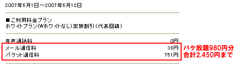 今日も暑いよ札幌~。部屋の中は30度オーバーだ(´Д`;)ソフトバンクモバイルでおいらはホワイトプラン+パケットし放題なんだけど。そんなにパケット通信はしないのでパケットし放題基本料980円の範囲で収まるようにしたいところ。MySoftbankで確認すると割引前の料金が表示されるからイマイチわかりづらいです。そんなわけで計算してみる・・・。パケットし放題は980円で12250パケット分使えます。MySoftBankは割引前の1パケット0.2円で計算されているので、0.2×12,250=2,450円 メールもパケット料金と同じ60%オフになるのでメール通信料+パケット通信料で2,450円までが980円の範囲です(・∀・)912SH白ロム価格 27,980円 (税込) 送料込 次回6月24日販売予定
