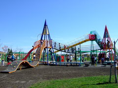 すっかり休みボケ中なメロディです。こんばんわ。ゴールデンウィーク中は市内で1歳児と公園三昧しています(^^)さとらんど、屯田公園、百合が原公園、石狩ふれあいの杜公園と攻略中してきました。あとはモエレ沼公園と手稲前田森林公園か・・・。南の方はあまり行かないけど滝野すずらん丘陵公園とか楽しいよね~(*´∀`*)初めて行った屯田公園はすご~い楽しそうな遊具がいっぱいでした。でも、1歳児にはまだちょっと早かった・・・。あいからずサッカーボール好き♪百合が原公園はチューリップやムスカリが咲いてました(^^)ここでもサッカーボール運搬中。今日行ってきた石狩ふれあいの杜公園ここの遊戯もすご~く楽しいです。最近の悩みは娘が芝生に決して手をつけようとしないこと。アスファルトの上も手をつけません。転んだときとか、肘から着地してます(^^; 肘で受身だと顔から地面にぶつかりそうでとても危険。うーん、草のちくちくや石ころのちくちくが嫌なのか、それとも手を汚したくないのやら・・・。早く慣れてくれるといいなぁ~。