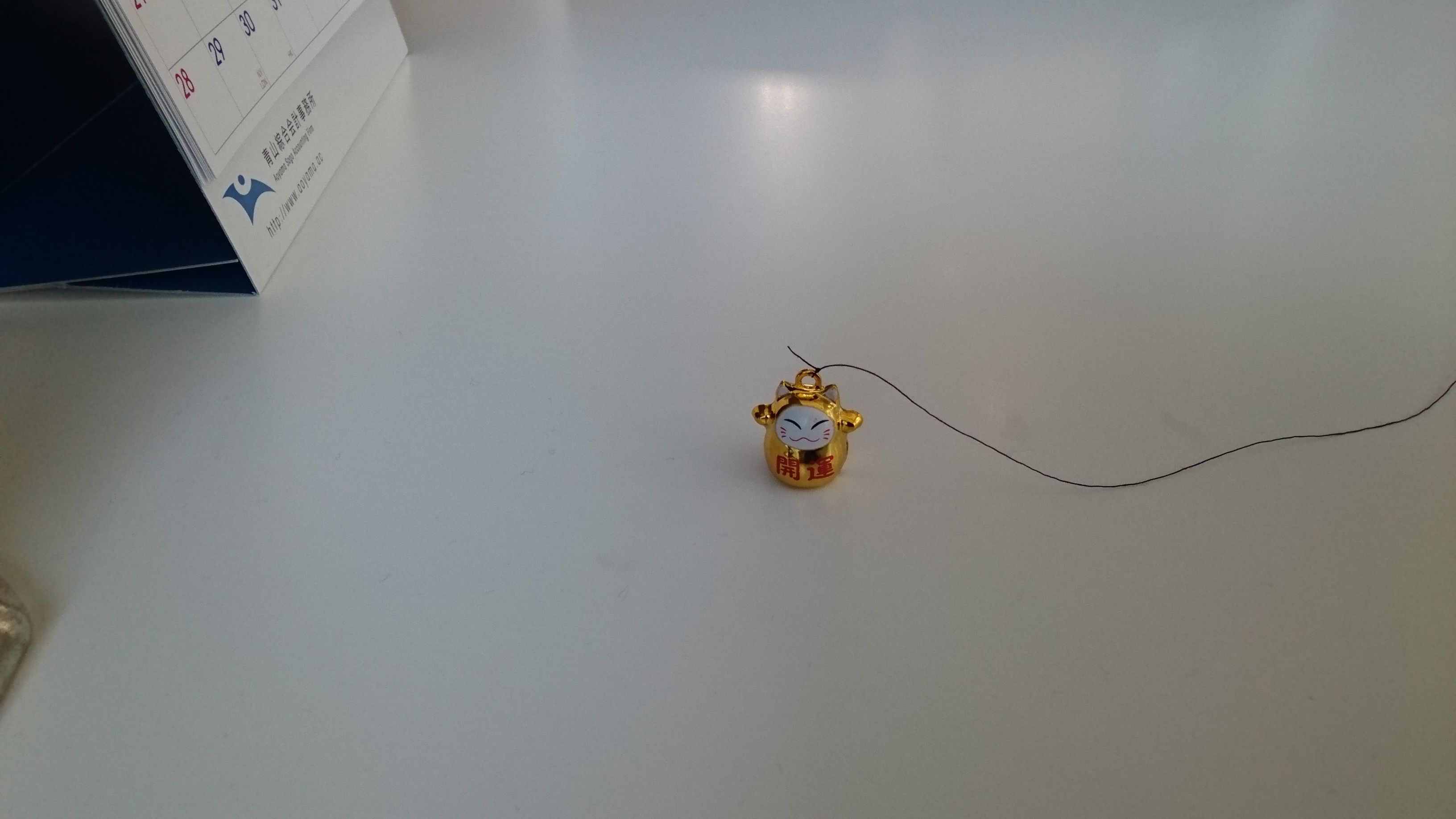ロウセルフとの対話にペンデュラムはとても便利です。いや、あちらがしゃべってくれたらもっと簡単なんですけど。それは無理ゲーなので、ペンデュラムと言う道具を通して意思の疎通を行うしかありません。もちろん、他の道具を利用してもよいのですけど、手軽で使いやすいのはペンデュラムでしょうな。ロング博士の著書にはオーラメーターのご紹介もありました。一般的なダウンジングに使われるロッドやペンデュラムと言うのは、動きの方向が定まっているために細かいニュアンスを届けることができないのです。せいぜい動きの角度などで理解するしかありません。それにくらべ、オーラメーターはロッドの先端が三次元的な動きをしますので、より複雑で情報量の多い会話を行うことができます。問題は値段が・・・。それに道具としては機構が複雑で、持ち運びするにはちょっとためらいますね。あんなのを人の目のあるところで使うのもちょっと憚られます。それはそれとして私は自前のペンデュラムでジョージ君と会話しております。簡単な意思の疎通はこれで十分ですが、たまには違った事も聞きたい。イエス、ノーだけでなく、degree、角度や程度ってのも知れれば便利ですね。ペンデュラムは自作しても構いませんし、むしろそちらの方が安上がりです。私も依頼を受けたりすると、その内容によって道具を自作します。で、最近受けた依頼に応じて新しいペンデュラムを自作することになりました。理由は、あるものを探さなくてはいけないのです。ただし、それはとても難しく困難を極めるでしょう。それを可能にするためには高感度のレーダーが必要なのです。そこでいろいろと材料を考えてみました。ペンデュラムの機構は簡単です。紐と吊るす重りがあればできます。紐はできるだけ細いのを使うことにしました。今回はミシン糸です。問題は重しですね。これが軽すぎると風でも反応してしまいますし、重すぎると鈍くなります。ちょうどよいものを選ばなくてはいけません。今回はダイソーで材料を探しました。粘土や練り消しでもできるので、そちらも試してみようと購入。他にアクセサリー類やストラップ、キーホルダーなどから良さそうなのをピックアップしてみました。その中に良さそうなのがありまして。こいつです。ぬこのお守り。鈴になってるので、揺らすと鳴ります。携帯ストラップだったので、余計な紐とか全部はずしました。ある程度の重さもあり、ミシン糸とのバランスもちょうど良く。さっそく実際に使ってみました。右~左~止まれ~ええ、ばっちりですね。非常に感度良好。ん?ちょっとまてよ・・・。この回転は?これだけ細い糸に結びつけると、なにもしなくても重り部分が回転したりしますよね。まあ、そのような動きはあるのですが。ジョージ君に命じて右回りしてって言いますと。もちろん、普通に右回転を始めます。それと同時にぬこ様も右に回るんです。重りの部分も回転してるんですよ。しかも左に回ってと言うと、ぬこ様も左回転します。そんなの普通じゃんかと言う人は、次の現象をどのように説明するでしょうか。”糸は右回転だけど、ぬこ様は左に回って”と言いました。はい、その通りになっています。ぎゃくもまたしかり。ぬこは止まり、糸だけ回れ。はい、これもできます。これはすごいwwwww今までそういうことに気がつかなかっただけかもしれませんが、回転を糸と重りで変えることが出来るのです。これはかなり微妙な命令や意思の疎通が可能になります。例えば、場所のパワーを確認するとき、そのパワーを糸の回転で表し、その性質をぬこ様で表現すると言う表し方もできるわけです。これは便利ですね。うん、いっそこれを売り出してみましょうかw