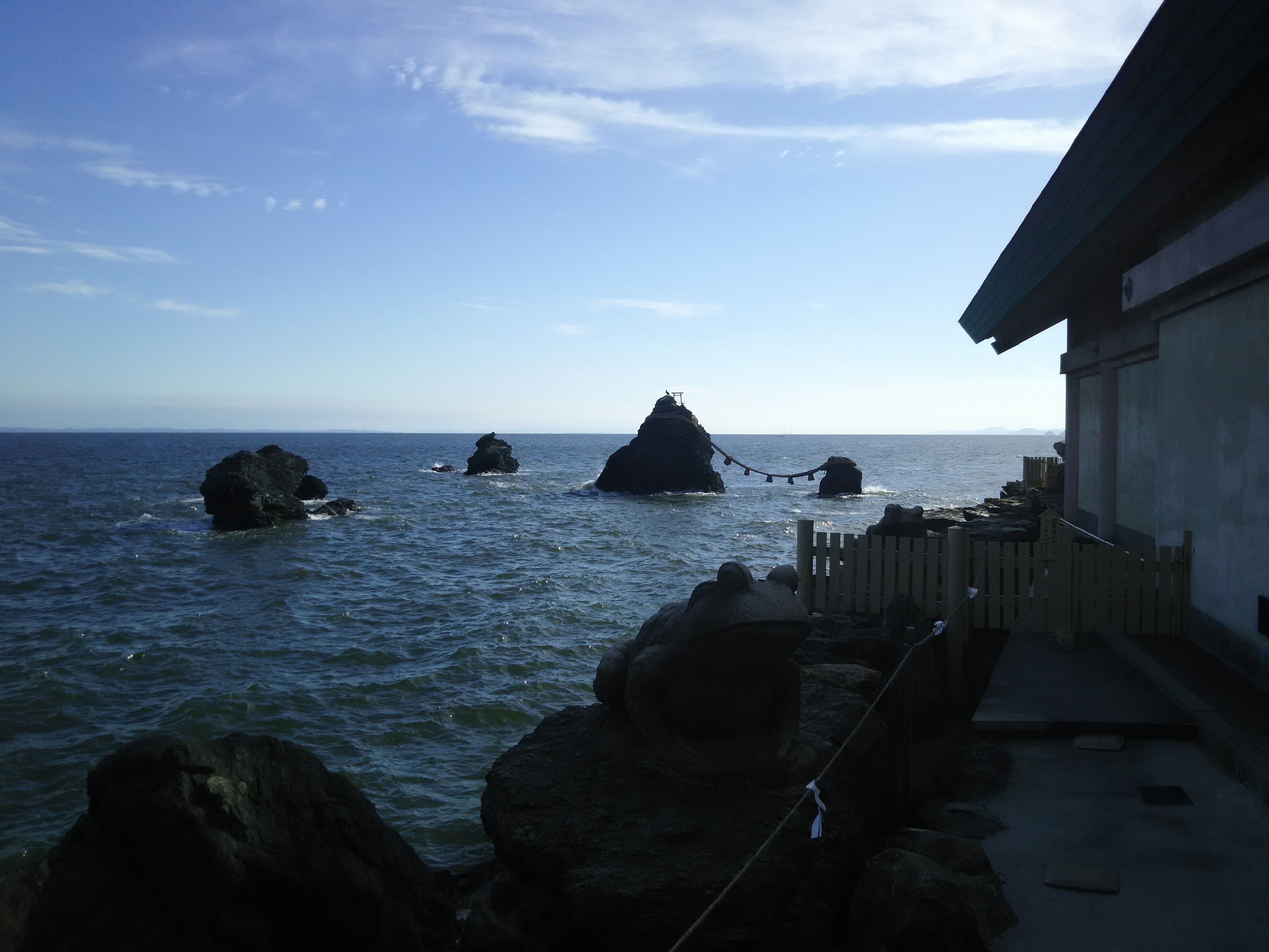 お盆休みなので実家の墓参りついでに伊勢に行ってきました。今回は正式参拝をする予定でしたので正装です。この暑さでw正宮正面の内側に入れてもらい、神様に一歩近づいた状態でお参りしてきました。ご寄付とご祈祷をお願いすると入れるんですが、正装(男性は黒のスーツか燕尾服、女性はそれに準ずる服装)でなければ受け付けてくれません。滅多にいけないので頑張りました。それと今回は確認したいこともあったので。まずは二見浦の二見興玉神社ここからお参りするのが正式です。ここはカエルで有名見たいですね。”無事かえる”にひっかけてるとか。もし伊勢参りをしたことがないなら、まずは正式参拝で調べてみてください。私たちはここから外宮→内宮→猿田彦神社→朝熊岳金剛證寺と回りました。古来からの正式参拝だそうです。これは外宮の中にある亀石です。境内の中に流れる小川にかかっている橋の敷石なんですけど、この川の部分、マイナス波動が常に感じられるんですよね。昔、きこうしさんと一緒に外宮を巡ったときと同じでした。何度浄化してもすぐに溜まってくると言っていたのですが、やはり変わりませんでした。さて、三ツ石です。これは一部では有名ですが、少し平たい石を三つ、ピラミッドのように組み合わせてあります。きこうしさん曰く、これは一種のエネルギー収集装置なのです。しかしこの写真には間違ってる部分があります。内部を砂利で埋められてるのですが、これでは十分にエネルギーが集まってこないんですよね。私は模型をつくって実験したことがありますが、この装置の良いところは材質に関わらず同じ性能が出るところです。つまり石でなくても、紙や木やプラスティックでも作れるのです。しかも大きいほど収集する力が強いので、携帯式の装置を作れば、どんな場所でもすぐに結界や浄化場所を作れます。非常に便利なので、今でも小さな三ツ石装置は持ち歩いています。内宮正面です~。五十鈴川で手洗い。このあと、正式参拝をしてきました。おかげ横丁にあった猫w駆け足でしたが、お伊勢参りでした。