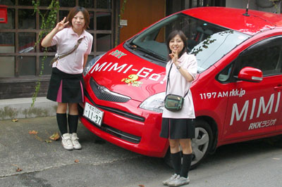 こんばんは!metropole muffinこと、メトロのマフィンです。今日は朝8時半にはミミー号がお掃除前のメトロのマフィンにご到着!まだツタがたくさん落ちている中で恐縮するばかりでしたが、工房から気持ちよく生放送をしてくださいました。ミミー号できてくださったのは、激辛大好き!スリムでキュートな田中美紀さんと太平燕大好きな加納麻衣さんのお二人。意外と小柄で華奢なお二人の仕事に対する熱心さ、スタンバイ前の準備のご様子など生放送の数分間を担当しているプロの気概が伝わってきました。工房入り口に下げていた風鈴を利用して涼しげな音を出してみたり、引き戸の開け方、その音の入れ方をどう入れるか…など、おっ、ちゃんとなさるのだなぁ~って頼もしくなりました。メトロのマフィン前で加納さんと田中さん(手前)丁度おいでになったお客様の写メにポーズスタジオには大田黒さんと檜室さん。4~5分間程の生中継でしたのでスタジオと絡むこともなく、サクサクと田中さんの質問にお応えしながらあっという間に終えましたが、弾むようにいろいろ尋ねて下さるテンポの良さに、元気が出てくる!ミミー号生中継という楽しいひとときでした。スタジオの大田黒さんの笑い声も聴こえてくるし、有難いな~って感謝でしたよ。月刊モコスで取り上げていただいたメトロ!昨日は夕方フレンドではアニメ大行進★黄金ラジオと題して、懐かしいアニメの特集を4時間やったのですが、最終的には遊びに来てくださったホワイトリリーさん、後半に助っ人で入った哲さんと桑波選手という4人組でエンディングまで突っ走ることになったのですが、この間もジェッツカンパニーの藤本一精さん、英太郎さん(熊次郎の大ファンです!笑)、中華さんと外せないアニメ、に関するコメントを届けてくださり、感謝でした。お世話になった一精さん、中華さん、(下段)英太郎さん ボンボさん※英太郎さんのマネージャーでもあるボンボ藤井さんの律儀な仕事振りにも感謝一精さんはロケの合間をぬって、英太郎さんも博多での放送終了後といった多忙の中、コメントを携帯電話で発してくださって局で録音させていただいた次第。嬉しかったです。三人三様の好きなアニメの話に聞き入りました。つまり昨日は一精さんたちに援護して貰い、今日は大田黒さんやミミー号の田中さんにサポートして貰い、先日はRKKの柴田さんにピックアップしていただいたわけです。なんとも恵まれていますよね。こーんなにラッキーで恵まれた取材が続く、サポートが続くからには、頑張って美味しい焼き菓子を焼くこと、楽しい番組を続行することですね。では、ホワイトリリーさんには、昨日の流れで12月には「アニメ大行進★黄金ラジオ」の冬の陣をまたやりますから、覚悟?していただこうっと(笑)。あ、山都町の春木さんからお電話をいただきました。9月には山都町では栗も収穫の時を迎えるそうですよ。実りの山都、です★そよ風パーク http://www.skaze.jp/index.html