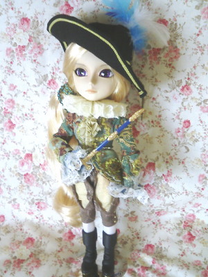 もう、タイトルでお分かりですね^^そう!カヴァリエ様が我が家にいらっしゃいました!!青い羽の帽子に、剣。ゴージャスな衣装に負けない美しいお顔&輝くブロンドヘア。ただねこの襟だけは・・・どうも・・・( ̄  ̄;) うーん中世の騎士というのは良いのですけどね「ピエロ」を想像してしまうのは、私だけ??www襟をはずし、髪をほどいたガヴァリエ様♪(*゚‐゚)ぼぉー「そなたは、私が守る!!」「・・・(* ̄。 ̄*)ウットリ」本来、貴婦人に付き従う騎乗の従者を意味する「カヴァリエ」の名ですが我が家ではもちろん王子様設定です!!wwお花を持たせてもお似合いね~♪ロンの優しい感じ、ガックン&淳の妖しい感じwとは違った高貴な美しさ。美しい・・・美し過ぎて困るわぁ~(何が?w)