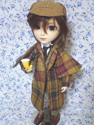 昨日のカヴァリエ様に続き、今日もお迎え報告ですwやって来たのはテヤンのシェードくん。「沈着冷静に・・・鋭い観察眼で、スイスイと謎を解く・・・。わたしは常に紳士であるのだ、うむ。」・・・(-""-;)ナル入ってない?しかも、オヤジ臭くない??お顔立ちはそりゃ綺麗だけどね。ちょっと気取ってるし、お堅いイメージだしぃ;;お迎えしておいて、何じゃ?って感じですがww最初にシェードくんを見たとき(←商品写真)の私の印象です^^;そう。本当はスルー予定だったんです。が・・・いけないのは、ショップがドールセールなんてやるからよーーーー!新しい子なのに、安かったのよーーーー!!!気づけばポチってました・・・(ノω`*)(・・。)ん?何かおかしい・・・うちのシェイドくん、この帽子もコートも、パイプなんて全く似合ってない;;本当に紳士なの?名探偵??気取ってるはずの、英国紳士なはずのシェイド・・・我が家に来たら、どうも勝手が違うらしいww 「ふっ・・・」ぉお!!(゚ロ゚屮)屮さすがに我が家に来る運命だっただけのことはある!!順応性ばっちりです。早くも我が家のカラーに染まったみたい( ̄m ̄〃)ぷぷっ!