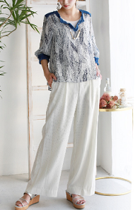 いきなり由香里、夕美子の背中をドンと叩いて。「あた。」夕美子。「ここに打って付け~がいるじゃな~い。」夕美子、「はぁ~~あ…???」「いいわよね~~矢萩さん…???」その由香里の一言で、今度は健之、目をパチクリさせて…、「えっ、ええええ…。はぁ~~あ…???」そこでいきなり洋造、與門同時に、「ぷっ。」「くっ。」信玄、「えっ…???…えええ…???どういう…事…???」ルイ、「ふ~~ん。な~るほどね~~。」「いやいやいやいやいやいや。はい…???…なんで、そうなる…???」両手を前に出して振りながら夕美子。由香里、「歳し~たの男の子~~。チャラチャラ、チャラチャラ…。ハウッ。…ハウッ。」口づさんで、何故か体を揺らして踊りながら…。「かかか。こいつぁ~いいや。」手を叩いて笑いながら洋造。「きゃっはははは。凄~い。」與門も手を叩いて。「ゆか…り…。あんた良く知ってるね~。そんな古いの…???」夕美子。「な~に言ってんの~。社会現象だよ~キャンディ~ズ~。」由香里。「かかかか。参りましたね~茂木さ~ん。まさか…キャンディ~ズが出てくるとは…。僕たち…幼稚園か小学生…。」健之。「ぜん~ぜん、分かんない。」信玄。「あんた…、まだ生まれてないでしょ。」ぶすっとして夕美子。「すみま…せん。僕も…。」と言いながら照れながら笑う和弘。「…と、言う事で~。夕美子~。お互い、パートナーいない同士。ワコウちゃん、東京見物、助けてあげなっさい。私なんて悠宇からニューヨーク、案内されたも同じなんだから…。」由香里。「へぇ~~。そうなんだ~~。旦那様~~???」與門。悠宇、「えっ、え~。まぁ~~。…僕…、キンダーガーテンからマンハッタンで生活してたんです。」夕美子、「わお。」「悠宇のお父さんがアメリカ、ニューヨーカー、そしてお母さんが日本人。お父さんが日本に留学中に知り合って結婚。そして悠宇が産まれて、数年後に本格的な仕事で親子共々にニューヨークに移り、そのまま帰化したって訳。」洋造、和弘、與門に夕美子。そして信玄に健之、「へぇ~~。」「歳相応も良いけど、年下も…かっわいいよ~~。」にたにたしながら由香里。「ちがうっ!!!…つぅ~に~。」夕美子。「な~に、照れてんだか~。ホレ。カッコいい女~~。」また夕美子の背中を叩いて由香里。洋造、「くっくく。」健之、「ふぅ~~。」與門、「かかかか。」夕美子、「笑うな。」「おや。道理でいないと思ったら、あんなところに。ほら。」窓の外のバルコニーを見て美崎と瑞樹。「ん~~???へっ…???與門さんたち…。」奈賀、五月。杏美、「ふ~~ん。ほほぅ~。」※※※※※※※※※※※※※※※※※※※ストライプハイウエストワイドパンツワイドパンツ ロングパンツ パンツ ワイド ハイウエスト ストライプ 縦ライン ストラップ リボン 肩紐 ゆったり フルレングス salus レディースパンツ(810-36011)QTUME 日本製 ストライプハイウエストワイドパンツ【2018 S/S】▼