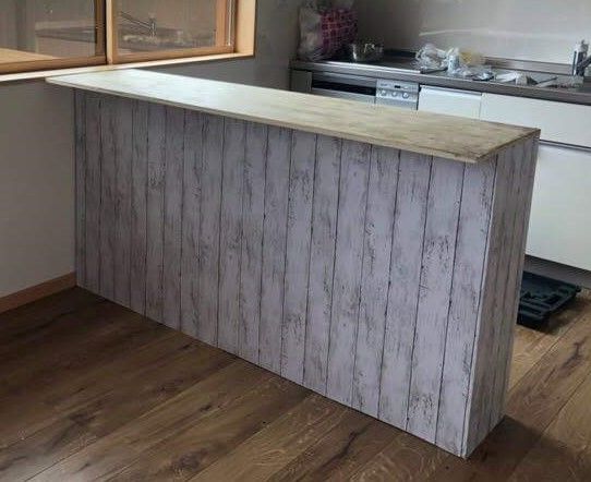 こんにちは~♡Keyさんのおやすみの日は夕ご飯を作ってくれるのですが、寒くて「おでん」をリクエストしたら「明日にならないと食べられない」と料理人精神を見せつけられました。(笑)では早速ですが…笑キッチンカウンターDIYの詳細について書いていきます!まず、材料とかかった費用の内訳はコチラっ!カラーボックス 1,190円×2=2,380円天板 3,132円×1=3,132円背面の板 689円×2=1,378円支えの棒 108円×3=324円ペンキ 1,600円×1=1,600円デザインシート 108円×5=540円ビス 108円×1=108円L字の金具 108円×3=324円合計 9,686円‼‼‼意外とかかってるな…笑と思いますが、横幅180センチ、縦幅約90センチほどの大きなキッチンカウンダ―で食器入れとしても活躍してくれていて、ものを置いたりとかテレビを見ながら料理をしたりとか…笑本当はKeyさんバーカウンターが欲しかったみたいなんですけど…バーカウンター キッチンカウンター カウンターテーブル カウンター おしゃれ 幅150 150 間仕切り キッチン収納 収納付き おしゃれ 木製 北欧 モダン 鏡面 天板 ホワイト ブラウン ストーン柄 国産 日本製 完成品 送料無料 楽天 通販↑こういうのそれは将来の夢、、、ということで。今はDIYで我慢してもらおう。笑でも安くできたけど主婦にとってはとっても便利なんですよ♡では次からは詳しい手順を含めて紹介していきます♪