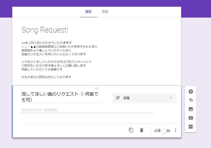 ↓ソングリクエストをするに至った結婚式のテーマについてはこちら