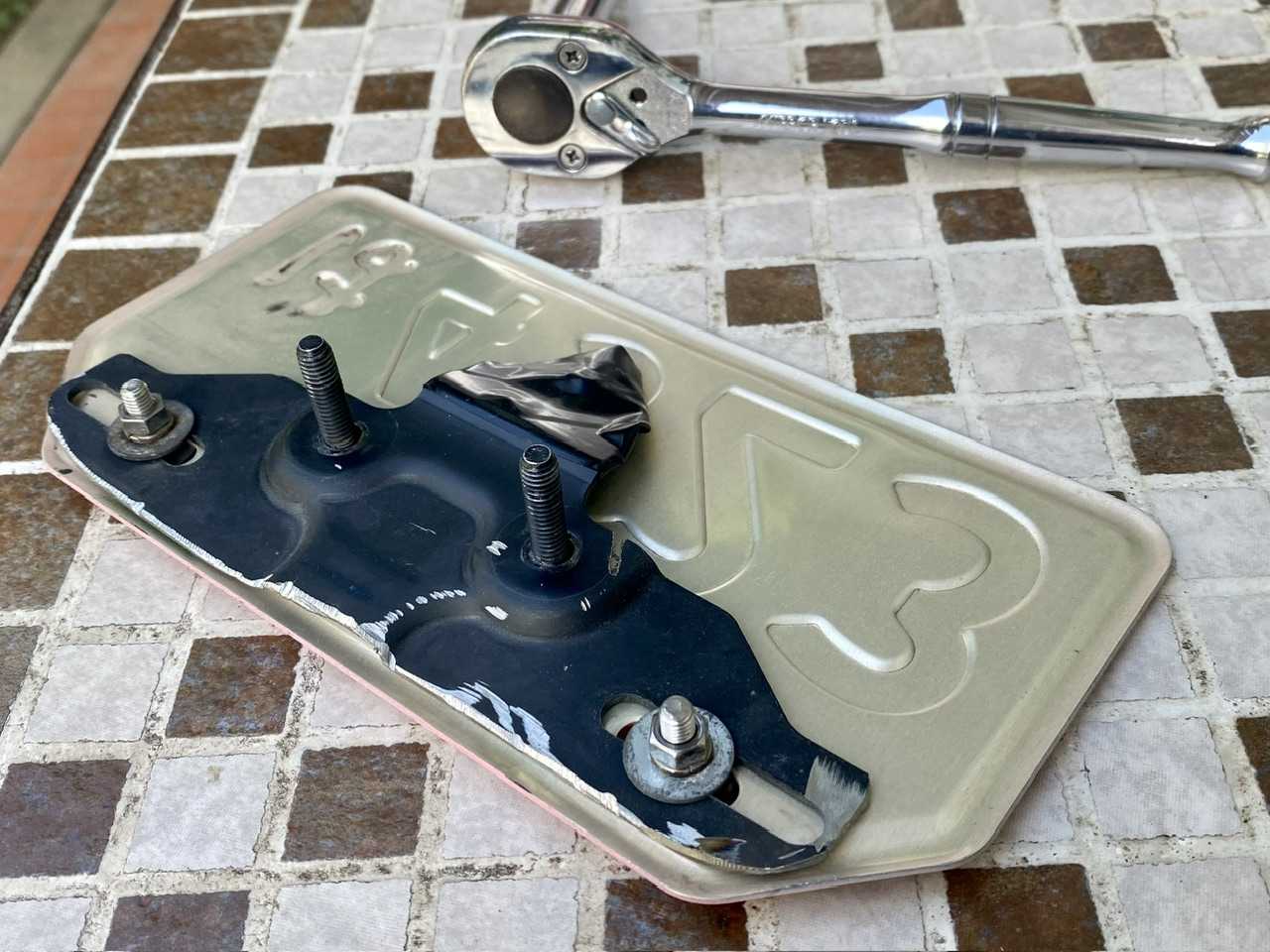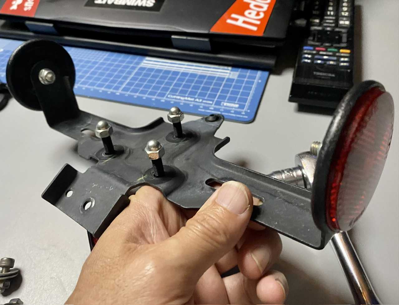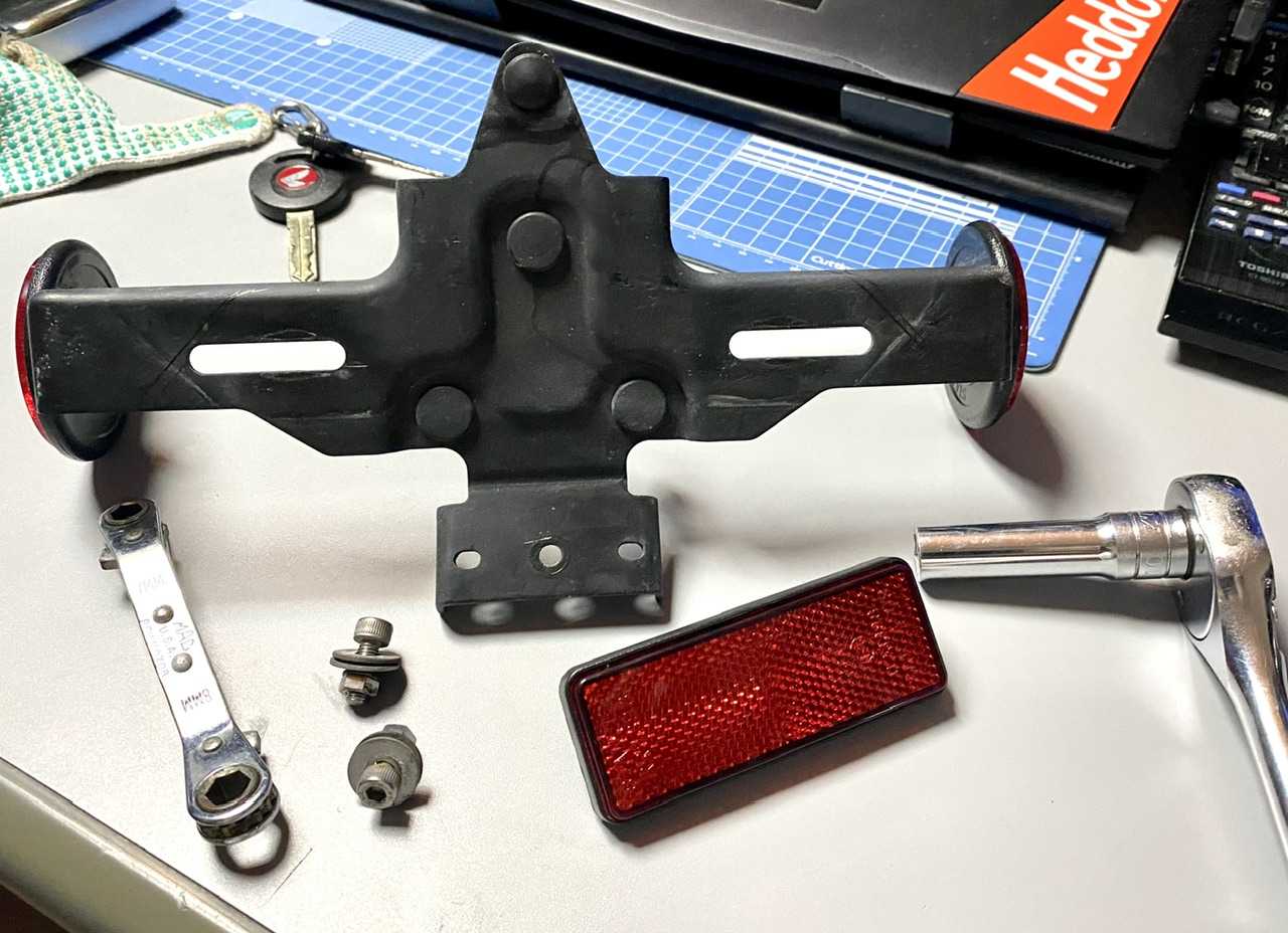 後ろの反射板もカットしてプレート自体を上下逆に付けた