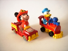 昔から家にあったディズニーグッズ。また一つ、いや二つ正体がわかりましたこれは昔自分が親戚からもらったものです。「おさがり」ってやつです。ミッキーのほうはかなりきれいでボンネットのシールもきれいな状態。ドナルドはかなり遊んだらしく塗りがはげてきています。当時はドナルドのほうが好きだったのかなそれとも機関車が好きだったのか・・・なんとこれがこの本に載っていたのです。25年前の1981年にトミーから発売されたディズニープチカと呼ばれているものだそうです。当時の値段は580円なり~。他にも数種類あるようですが我が家にあるのはこの2つだけ。これからも大切にしていきたいものですね。