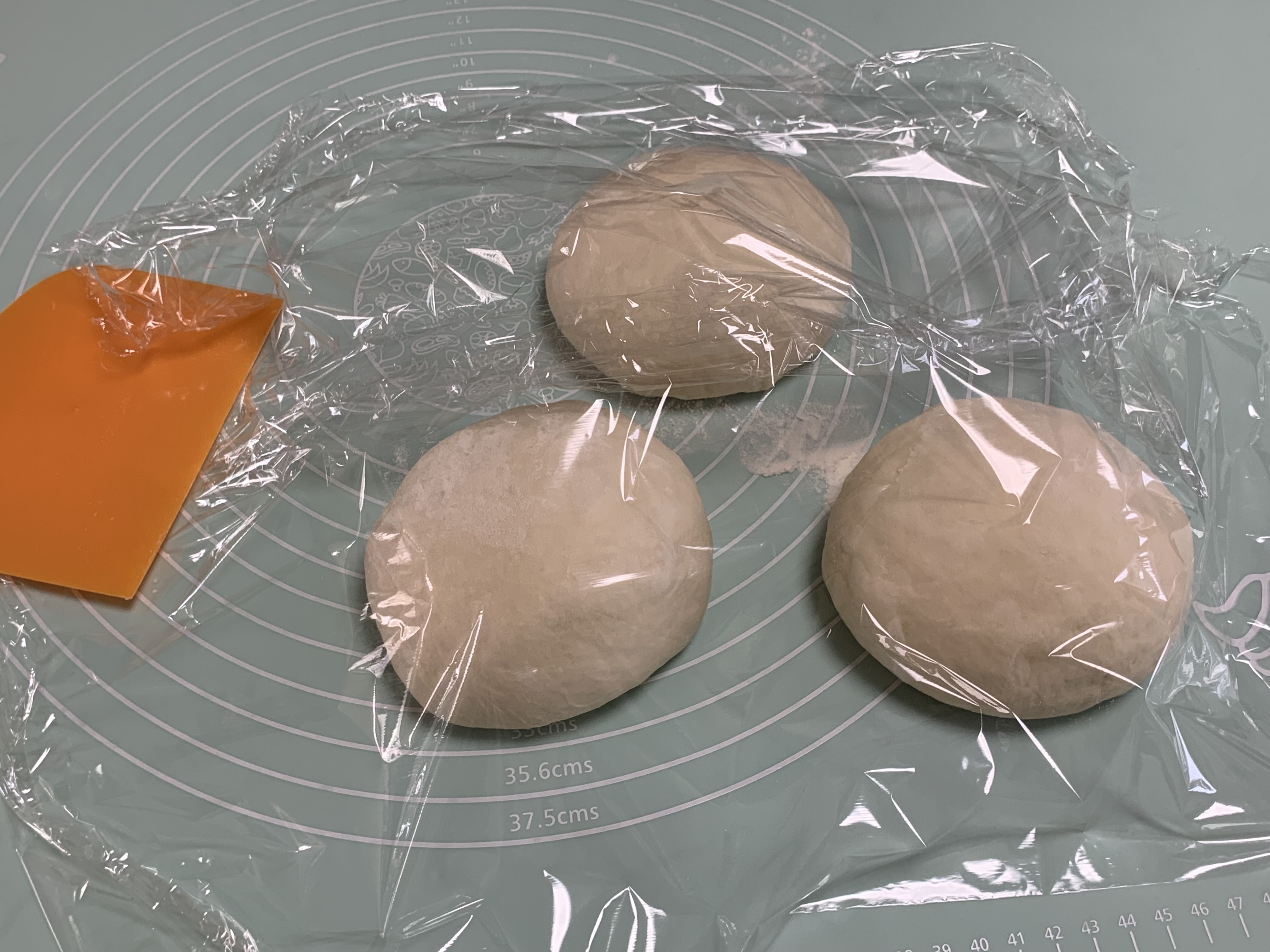 一次発酵は機械にお任せ後、直ぐに3分割して