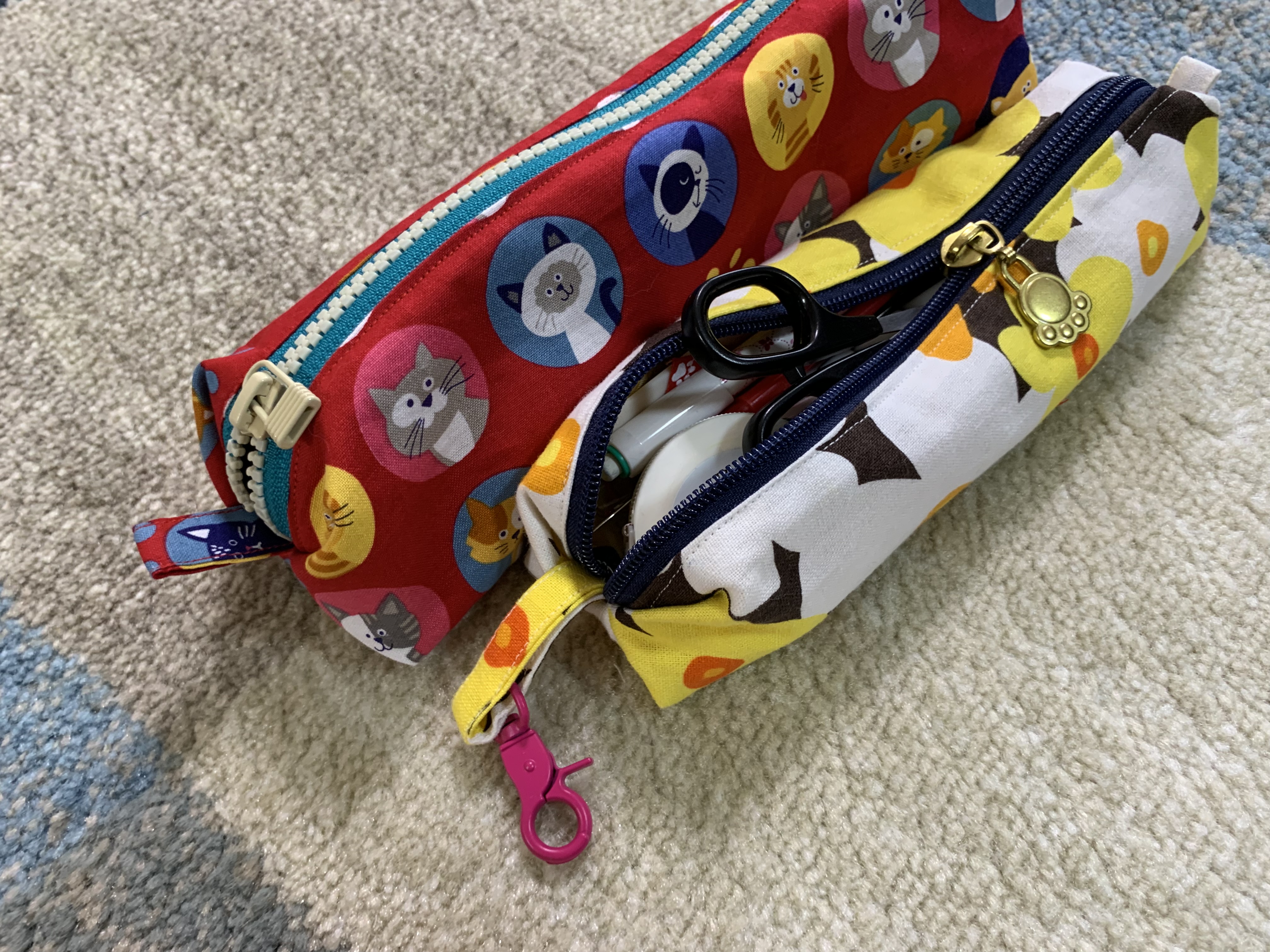 下の手前は以前縫ったお裁縫の長い小物入れ