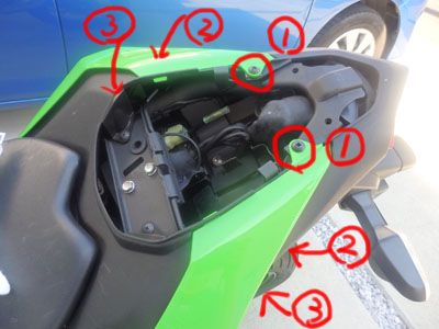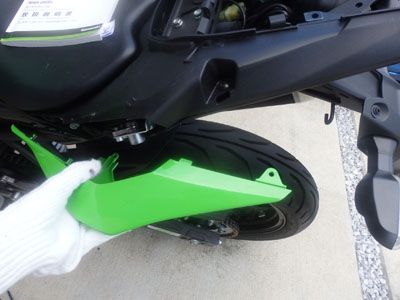 さて、それらを外すと、サイドカウルが爪で引っかかってるので、それを外しカウルを引き抜きます。