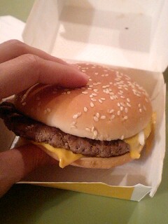 先日、期間限定200円だったので食べてきました。マクドナルドのクォーター…えー…クォーター・パウンドー…えー…クォーターパウンダー・チーズ!それ!横文字が覚えられない!もうダメか?!(なにが?)なんか意外とシンプルでした。ただ確かにデカい。写真で見るとけっこう小さく感じますが、肉がバンズからはみ出ています。食べたらわりと腹が膨れました。普通のバーガーならおやつだけど、これなら軽食にはなるかも。でも通常の値段払って食べるなら松屋とか行っちゃいますけどねw味ですか…普通にマックのバーガーでした。