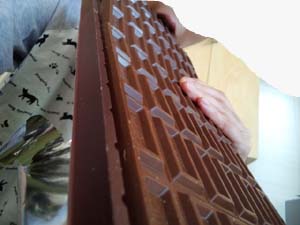 もうスーパーとか行くと、バレンタインコーナーが出来上がってますね。バレンタインといえばチョコ!しかも普段市販してくれない珍しチョコ!ということで、たまに買ってる1000円板チョコ買って来ました。こんな感じ↓明治のミルクチョコレート・ビッグです。昔はストロベリーチョコレートでもビッグはあったんですけどね。ちゃんと隅々迄いちごクリーム入ってて美味しかったのですが、ここ数年見かけてません。残念…明治 ストロベリーチョコレート 10入価格:1,201円(税込、送料別)余談ですけど、画像の左下…チョコレートの下に当たるあたりに草のような、大根の葉っぱの付け根のようなものが見えます。本来は私の腹の部分が見えるのに、まるでその部分だけすっぽり抜けて向こう側が見えるような気になります。ひえええ~心霊写真?!と思いましたが、実はチョコレートを包んでたアルミ袋に他の風景が写り込んでたものでした。あ~こわ…