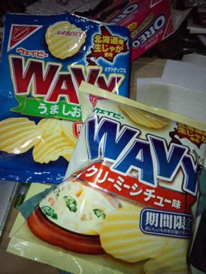 ヤマザキナビスコの謎のお菓子発見!ウェイビー うましお味/クリーミーシチュー味しかしこの商品…ナビスコのHPに乗ってないのですよ。なんで?謎すぎるwちなみにちゃんとヤマザキナビスコですよ。ヤマモトナジスコとかじゃなくw味はいたって普通~~~のポテチでした。あんましナビスコ感がしない…