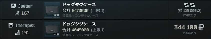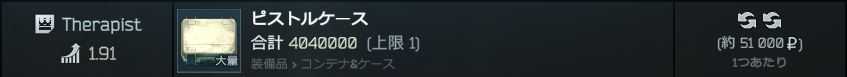 このケースで金策、にはならないだろうが単体アイテムとしては置いておいてもいいだろう。キーケースにも入るわけだし。(2025年5月末現在、60,000~72,000ルーブルで推移している。マス単価高し。)