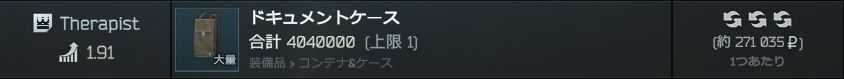 このケース自体は[トレーダー:Therapist]がロイヤリティレベル1で350,000ルーブルほどで販売しており、入手難易度は高くない。またケースに入る数を考えると1度にたくさんほしい、ということもない。