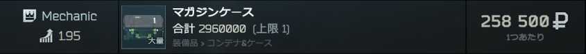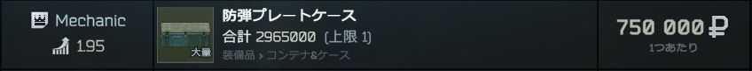 しかしながら、[トレーダー:Mechanic]のロイヤリティレベルが2あれば200,000ルーブル未満で購入することが容易なためこれを個人の金策にするのはややつらい。