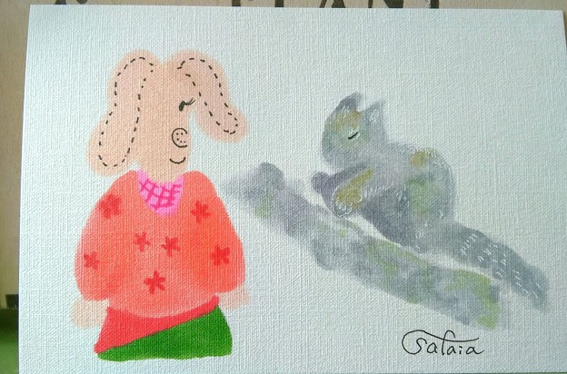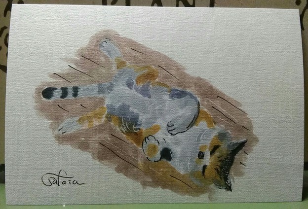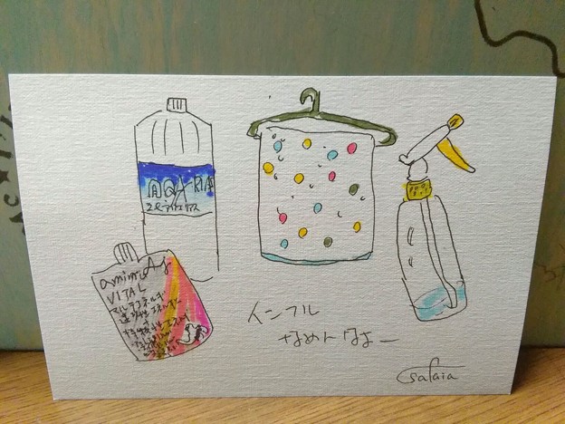 おはようございます♪お忙しい中で訪問頂きどうも有難うございます。夢が叶うまで39 インフルなめんなよー posted by (C)みえこ55今週の火曜日の夕方くらいから、軽く咳が出るなと思い、その日は薬局で咳止めの薬を買ってきて飲んでみました。 薬が効いたようで、咳も出なくなったので、次の日普通にジムに行ったのですが、なんだかとってもだるい。 懸垂をいつもやっているのですが、いつもは5回出来たのに、この日は3回で限界でした。 やはり調子が悪いのかなと思いつつ、そのままダンスレッスンを受けました。 ところがやはり集中力がなくなっていて、先生に注意されていることにも気づかないで、一人だけ違う振りで踊っていたり。 やっぱりおかしいなと思い、その後のレッスンは休んで帰ることにしました。 しかし、まっすぐ家に帰る前に一仕事と思い、絵を置いてくれている店に挨拶方々顔を出し、それからネットで販売するに辺り運送業者との関わりができたので、詳細の確認に向かいました。 ようやく家にたどりついて、とりあえず寝ることに。 熱は37度4分、まあ大したことないかと思いました。次の日の昨日もだるかったですが、まあ大したことないかと朝から猫ちゃんの顔を描いて、ブログをアップして、と普通にしていましたが、熱を測ると38度。こりゃインフルだなと病院に行きました。 すると先生が「誠に残念ですがインフルエンザA型です。」とおっしゃいました。 私としてはインフルエンザだろうと予測していた事が当たったぞ!という思いだったので、残念ですがではなく、やった!当たったぞ!という気持ちだったのですが、その後の私の病状の悪化を考えると、やはりインフルエンザというものは残念な病気であると認識しました。家に帰ってからはいくつか約束などがあったところに、行けなくなった事をメールで伝え、大人しく寝て過ごす事にしました。 今はいい薬があるので、それを飲めば一気に楽になるのだろうと思ってほぼインフルをなめてかかっていました。 夕方になりお腹がすいたので、リビングに行くと、息子がいたのでお腹がすいたというと、お粥を作ってくれました。 お茶碗半分くらいに盛られたお粥を見て、なんだ少ないな…と思いましたが、半分食べてもう食べられなくなり、2階の寝室に戻って寝ようと思ったのですが、階段を一段上がることも出来ない状態で、息子を呼んで階段を登らせてもらわねばと思ったところで意識が途絶えました。それから、どれくらいたったのかはわかりませんが、私はしばらく階段下の廊下で倒れ付していたようで、息子が泣きそうになりながら「お母さん、お母さん、救急車呼ぶよ、救急車呼んだほうがいいよ。」と叫んでいる声が聞こえてきました。 意識がもうろうとしていて、確かにこれは救急車かもしれないと思ったのですが、救急車を呼ぶのは恥ずかしいと思ってしまい、息子に大丈夫かもしれないので、ちょっと待ってくれと言いました。 息子は夫に電話をしましたが繋がらないので、隣の奥さんのところに駆け込んで、助けを求めに行きました。 その後は、少しずつ意識が戻り、快方に向かっているのを自分でも感じられるようになりました。熱が上がり始めてからも2日近く、寒気がして、特に足先が冷たかったのですが、倒れたときは汗が全身から出て、下着やパジャマがびっしょりになりました。先日のニュースでも、インフルエンザらしき女性がホームから転落して亡くなったというニュースが流れていましたが、私も階段をあのまま登っていたら、どうなっていたかわからないなと思いました。 突然意識がなくなったのです。ちなみに処方された薬はゾフルーザです。 多分新薬なので、副作用などまだあまり知られていないかもしれません。さて、その後は息子が献身的に看病をしてくれ、2階は危ないからと、一階に布団を用意し、乾燥が良くないからと、部屋中にバスタオルをかけて、霧吹きで水をかけ続けていました。 シュッシュッという霧吹きの音がしばらくしている中私はまた意識が遠退いていきました。隣の奥様は、私には甘酒やルイボスティー、イチゴを、息子にはご飯をまだ食べていないでしょうとピザを焼いて持って来てくれました。このところ、絵を描く事ばかりを考えて過ごしてきた私は、子供達など早く出ていけばいいなと思ったりもしていましたが、一人で暮らすということは、こういうリスクもあるのだということも今回感じた次第です。 母は父が亡くなってから、33年間独り暮らしをしていましたが、よく一人でやってきたなとも思いました。 母は2年ほど前に風邪で入院したことがありましたが、さぞ心細かっただろうと思いました。人間関係というのは、時に煩わしいと思う事もありますが、こうなってみてはじめて、人は一人では生きていけないものなのだということを、今更ながら知りました。 この年になるまでそれがわかっていなかったというのは非常に恥ずかしい