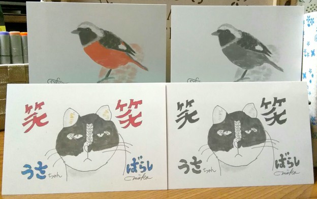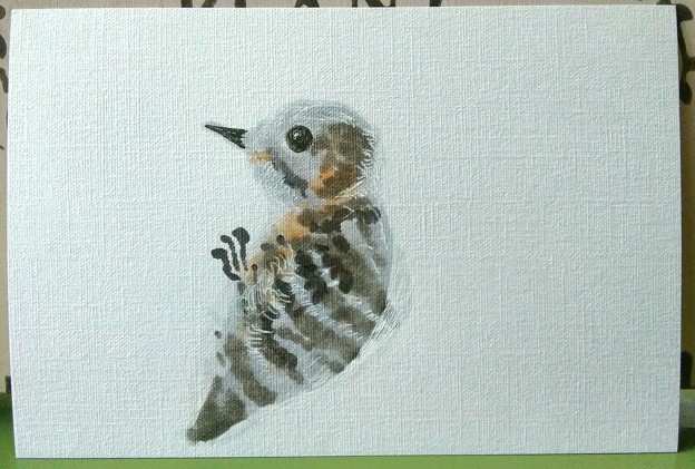 おはようございます♪お忙しい中で訪問頂きどうも有難うございます。今日は予報では曇りで最高気温が4度と寒い一日になりそうです。夢が叶うまで94 水とカワセミ posted by (C)みえこ55昔ある若手の女流画家の絵を見たことがあり、その方は水をテーマに描いていらっしゃいました。その鮮明な美しい絵がいまだに脳裏に焼き付いており、私も私なりの水を描いていきたいと思っています。まだ浅い感じですけど、パステル調で優しい色合いから始めてみました。もっと大胆な色使いもこれから挑戦していきたいです。カワセミは何度も描いているのに同じ色が出せません。思い通りの色が出せるようになりたいです。こんな感じですけどけっこう時間がかかってしまいました。サクッと描いたのにすごく時間がかかったように見えるものもあれば、かなり丁寧に描いたのに雑に見えたり、面白いです。nabegoro さんの、ほんとにほんとに素晴らしいお写真はコチラです。 http://photozou.jp/photo/show/270901/260166741いつも素晴らしい作品をどうも有難うございます。夢が叶うまで95 コゲラと柿 posted by (C)みえこ55蔵を開けば何度となくコゲラには出会って来ましたが、本物のコゲラを見たのは多分片手におさまる程度。しかも柿と一緒のコゲラなんて、一度だって見たことはありません。本当に有り難いの一言です。こんな素敵なお写真を撮って下さるなんて!コゲラは可愛いです。見ているだけで癒されます。すごく幸せな気持ちになってきます。「可愛いは地球を救う」というコンセプトで絵を描いていますが、まさにそれです。可愛いものを見ても可愛いと思える事があると、大事だと思います。可愛いという感情がないと、なんとなくギスギスした感じになってきます。年齢と共に可愛さがなくなる人と可愛さが増してくる人がいますが、その違いは何なのでしょうね?まあ、よくわかりませんが目指すところは「可愛い」これです。可愛い作品をこれからも描いて行こうと思います。思考の全てを可愛くデコるつもりです。昔ライダーさん、とても可愛いコゲラのお写真をどうも有難うございます。感謝感謝です。http://photozou.jp/photo/show/174781/260157023夢が叶うまで96 オウギバト posted by (C)みえこ55今朝くんちゃんのところで拝見したオウギバトがとても綺麗でびっくり。さっそく描かせて頂きました。くんちゃん、お写真をどうも有難うございました。世の中にこんな美しい鳥がいるとは。ズーラシアにいるそうです。 http://photozou.jp/photo/show/3138245/260169674夢が叶うまで96 ポートレート posted by (C)みえこ55ジムで生徒さんから大人気の先生がいます。ボーイッシュでとにかく明るくて元気。昨日は雪でしたけど、「そりで来ようと思った」とか、ジョークも可愛いです。そりで来たらこんな感じになりますよって(笑)これまで三枚描いて先生に差し上げたのですが、とても喜んでくださって、その喜びかたが面白いのでまた描いてみました。一枚目はリアルな先生を描いたのですが、ウルトラマンみたいになったので、二枚目は綺麗目に仕上げたところ、全く似ていなく、「綺麗目に仕上げたら似てなくなっちゃいました。」と言って渡したら、それもまた気に入って下さいました。三枚目は、やはり本人に寄せて描いたところ、やはりとてもよく似ていたので、これも満足頂けたようです。そして今回、ようやく綺麗目に描いて似ていると思える自信作が出来上がりました。夢が叶うまで97 MIUちゃん posted by (C)みえこ55昨日は友人が飼い猫ちゃんの写真を送ってくれたので、描いてみました。私のサインが入ったものと、猫ちゃんお名前を入れたものなど数種類。絵はがきとして使えるように裏には郵便番号を書き入れるマスも印刷してあります。夢が叶うまで98 ポートレートのお値段 posted by (C)みえこ55こちらは知り合いからお孫さんです。なかなかいい感じに描けました。お値段は知り合い価格ということで無料です。仕事としてはかなり時間がかかるので、今のところは受け付けてはいません。 ←ポチっとお願いいたします♪