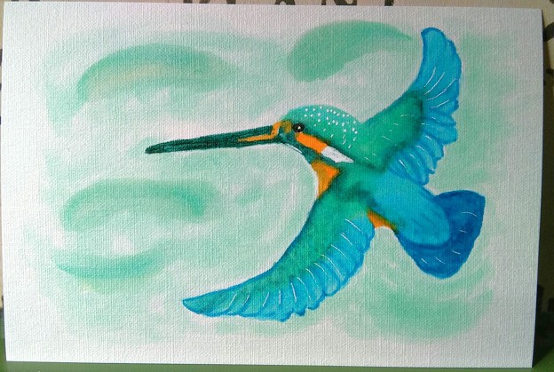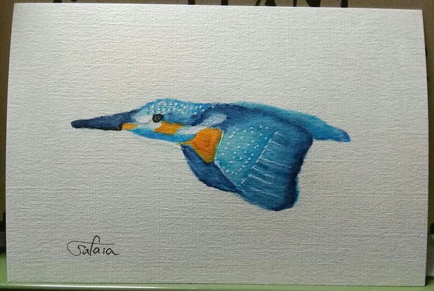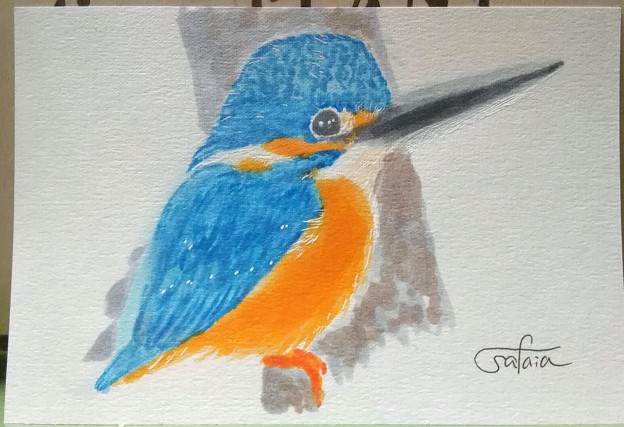 おはようございます♪お忙しい中で訪問頂きどうも有難うございます。朝6時半、まだ外はうす暗いですが、少しずつ明るくなり始めています。今日は予報では曇りがちの一日になるようです。だんだん天気が不安定になり、春が近づいて来るのでしょうね。夢が叶うまで75 カワセミに挑む posted by (C)みえこ55カワセミ、大好きです。なので上手に描けるようになりたい。ただその思いだけです。初めて見たときは、子供の頃に読んだ童話に出てくる「幸せの青い鳥だ!」と思って、こんな美しい鳥がいるということに驚きました。皆さんは笑うかもしれませんが、40歳を過ぎるまで、こんな鳥が日本にいる、しかも、比較的身近な場所にいたなんて、知らずにいました。初めてカワセミを見てからというもの、私は毎日カワセミがいそうな場所に行き、カワセミを探しました。結果、歩いて健康になりました。歩いていると、色々な悩みごとなどが消えていき、前向きな気持ちになれました。カワセミに会うために、早寝早起きもするようになり、規則正しい生活を送るようにもなりました。なので、今私が健康で生き生きと暮らしているのはカワセミのおかげもあるかもしれないと思います。なので、ある意味崇拝しています。私を元気にしてくれた神様のような…今朝もnabegoro さんのカワセミを描かせて頂きました。本物が凄すぎて恥ずかしくなりますが、出来はいまいちでも、カワセミに向き合えた時間がもにすごく貴重な気がしています。グラデーション塗りといい、色を何度も重ねて塗ります。インクが乾くと色が変わるので、また塗ります。これでもけっこう根気がいる作業で、体調が万全でないと描けないものだということに気づきました。集中力が続かなくなるのです。本来はもっと塗り重ねる必要があるとは思ったのですが、今朝は昨日ジムでさんざん体を鍛えた後で、カラオケに行き三時間も歌って踊ったので、疲れて、降参致しました。ちなみに、歌った歌は、ダンシングヒーロー、トモロー、かもめが翔んだ日、ハナミズキ、異邦人、七色の明日(BoA)、rain(秦基博)、茜色の約束(いきものがかり)、恋に落ちて、ロマンスの神様、チューチュートレイン(EXILE)、lemon(米津)、夏に恋する女達(大貫妙子)、アバのサンキューフォーザミュージック、デザイアー(中森明菜)、マジで恋する5秒前などです。nabegoro さんのお写真はこちらです。 http://photozou.jp/photo/show/270901/260132159 ←ポチっとお願いいたします♪