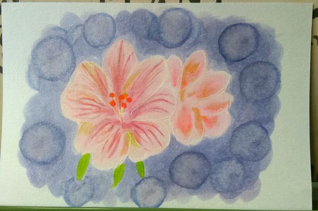 おはようございます♪お忙しい中で訪問頂きどうも有難うございます。夢が叶うまで154 あこがれと友情 posted by (C)みえこ55やる気だけはあるのであとは結果がついてくれば…と思いながら毎日創作活動に励んでいます。一番楽しいのは好きな人やもの、花等を描いているときです。基本的には好きなものしか描いていないので、描くことイコールめっちゃ楽しい時間ですが。今日は私の所属しているダンスチームの応援団の方が、発表会のお疲れ様会を開いて下さったので、その方とダンスの師匠のポートレートを描きました。背景にスワロフスキーをつけて、師匠の方には、たけ丸さんのところで拝見した「蚤の襖(のみのふすま)」というお花を、もう一方の方はトキゾウさんの「セリバオウレン」を描きました。ありきたりのバラなど華やかな花もいいですが、季節感を感じるこんな草花もいいなと思い描いてみました。たけ丸さん、トキゾウさん、素敵なお写真をどうも有り難うございました。こちらのお花達はかなりときめきました。素敵すぎて素敵すぎて♪たけ丸さんのお花はこちらです。 http://photozou.jp/photo/show/3204755/260380095トキゾウさんのセリバオウレンはこちらです。 http://photozou.jp/photo/show/3164671/259633635夢が叶うまで155 もうだめだと思ったときからが練習なのだ posted by (C)みえこ55我が庭のマンサクの花が咲いたら描こうと、思っていました。しかし、なかなか咲く気配なしです。そんなときにcibaさんのところで拝見したので描いてみました。昨日の朝から描いていたのですが、途中で突然、「かあちゃん間に合わねえ!駅まで送ってくれ!」だとか、描いている最中に、長女やら娘やらに用を頼まれて、ようやく夜になって色を塗れるだんかいまできました。ほぼ塗り終えた段階で仕上げようと思ったら、コーヒーなのか何なのか?わからないですが、二センチほどの茶色いシミができているではありませんか!あちゃあ!しかも、塗っていたペンのインクがなってしまい、別の色を塗ればムラになってしまいます。一日かけて描いていたのに、なんとも残念な。そう思っていたときに、ひまうさぎでシミを消すことを思い付きました。そこからは、ひたすらひまうさぎを描く作業です。ふと、中学の頃に読んだ本の一節を思い出しました。正確な文ではないですが、「もうだめだと思ったときからが練習なのだ。」というニュアンスのことが書かれていました。この言葉に今までどれだけ助けられたかわかりません。私が今、元気に楽しく過ごすことが出来ているのは、この言葉のおかげです。魔法の言葉だなと思います。それと、皆さんのお写真もとても大きな力を頂いております。cibaさん、美しいマンサクのお写真をどうも有り難うございました。ciba さんのマンサクはこちらです。 http://photozou.jp/photo/show/188100/260368595 夢が叶うまで156 咲いた咲いた posted by (C)みえこ55友人が聞いたことのない花をあげると言うのでもらって、部屋に置いてあったのですが、いつの間にか咲いていてびっくり。つぼみでもらったときは、じみーに見えたのですが、咲いてみるとなんともまあ美しい。多分ランの一種だと思います。今度名前を聞いてきます。2度も聞いたのですが忘れてしまいました。 ←ポチっとお願いいたします♪