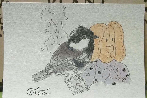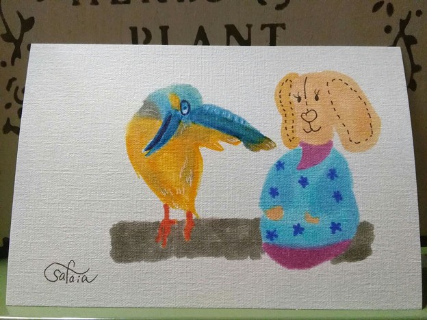 おはようございます♪お忙しい中で訪問頂きどうも有難うございます。昨日は一日中雨で、今朝もまだ降り続いています。洗濯物が乾かないのは困りますが、植物達にとっては恵みの雨です。夢が叶うまで167カワセミと合コン posted by (C)みえこ55この年齢になると恋とか愛とかなくなっちゃいますが、今朝は久しぶりに恋をしましたよ。nabegoro さんのカワセミ君、超イケメン君で、私は気分はカワセミちゃん。カッコよすぎて惚れ惚れ。どうしましょう。nabegoro さん、イケメン君をご紹介下さりどうも有り難うございました。リアルなイケメン君のお写真はこちらです。 http://photozou.jp/photo/show/270901/260419517夢が叶うまで168 宿題 posted by (C)みえこ55お絵描き教室通ってくる生徒さんに、先週ひまうさぎの描き方を教えてあげたところ、折り紙の裏に描いて友達にあげていたと、親御さんが教えてくださいました。家に帰ってからも描いてくれたこととても嬉しかったです。それと同時に、「宿題ですよ」と課題を与えた訳ではないのに、自ら宿題を仕上げていたことに感動しました。emotionです。毎回ラインでお母様には指導の内容と、指導の方向性については説明しています。指導計画も今後書面でお渡しする予定です。また、本人がどの道に進みたいかによっては、専門に学ぶことも勧めなければと思います。が、今は遊ぶ事を通して学び方を自ら力で見つける事を主体に考えています。この指導方法は、ドイツ在住時代に学んだ「シュタイナー教育」の考え方です。カリキュラムをガチガチに決めて、子供に教え込むにではなく、自由にやりたいことを選ばせて、考えさせるという教育です。日本の教育とは大きく異なると思います。ガチガチに教え込まれる教育は義務教育で十分やっているはずなので、こちらでは、別の形での指導方法でと考えています。もしかしたら、指導という言葉は適切ではないかもしれません。どちらかというと、指導はしてはいけないのです。指導というと指示した方向に導くという意味合いが強く感じられます。さて、先週生徒さんとひまうさぎを描いていたとき、「ひまうさぎの犬はないの?ひまいぬとか。」と聞かれました。犬だけでなく、ひまうさぎ以外のひまなんとかはありません。これはいい宿題をもらったなと思い、毎日考えていたのですが、なかなか出来なくて、できたのが昨日。約一週間かかってしまいました。一応モチーフは柴犬です。合格点が出るかどうか?ひまうさぎはカントリードールからの発想で出来たので、少し泥臭いファッションになります。アメリカの開拓時代のファッションです。こちらのひま犬はちょっと個性的なファッションという設定になっています。今流行りのファッションではなく、独自のファッションスタイルを貫きます。ひまうさぎよりも少し性格が強い感じの子です。夢が叶うまで169 桜咲く posted by (C)みえこ55この時期は受験シーズンでヤキモキ、ハラハラ、ドキドキしている方も多いのではと思います。我が家は下の子はこの春から大学2年生になるので、受験とは関係がなくなり、私もようやくひとつ肩の荷が下りたという感じです。しかし、周りにはけっこう受験生を抱えているという親御さんがいて、他人事ながら、どうなったかなと心配をしています。一浪した上に滑り止めさえ次々と落ち続けているという報告もあったりして、なんと慰めていいのやら。心労をお察しします。落ち続けることには我が家は耐性が多少あります。 長女が就職活動をしていたときなど、落ちて当たり前だったので。とはいえ、落ちるのは辛いです。先日やっと、ひとつ受かったと報告をくれた友人にお祝いのカードを描きました。とてもガッツのあるお母さんです。ナースをやっています。不思議な縁があるもので、認知症の母がある日家で大暴れをして、大人四人でもどうにも手がつけられなくなり、入院先を探していたとき、唯一受け入れてくれた病院で勤務しています。 ←ポチっとお願いいたします♪