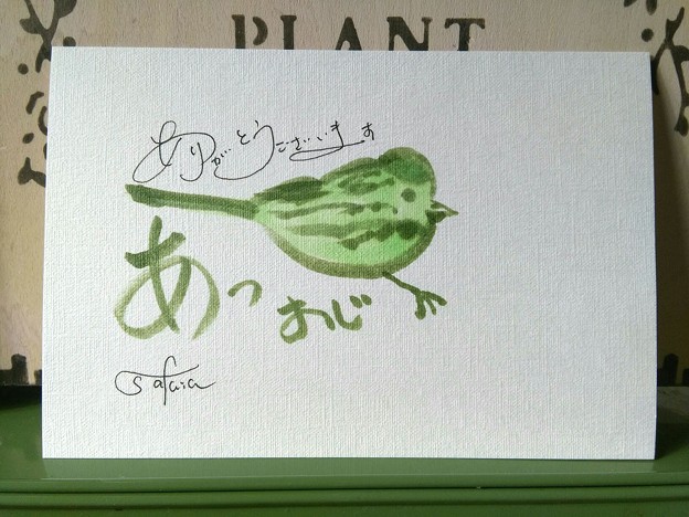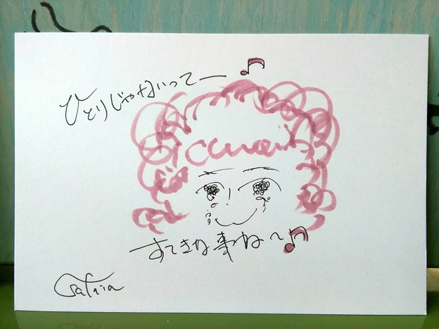 おはようございます♪お忙しい中で訪問頂きどうも有難うございます。今日も朝からとてもいいお天気です。日中は気温も上がり過ごしやすくなるそうです。夢が叶うまで62 家族が増える夢 posted by (C)みえこ55いつも「こうなればいいのに」と、ひそかに思っていたことが現実になってきました。これが自分でもとても不思議でなりません。自分の意思でそうしたのであれば不思議ではないのですが、思っていたことが、降ってわいてきたように現実化するのです。今回はジムで出ている筋トレ系と格闘技系のグループレッスンでいつも一緒になる大学4年生の男の子。友人の息子さんなのですが、毎回会うたびに話をするようになり、仲良くなりました。就職が決ま多分4月からはジムに来れなくなるという話を聞いたとき、なぜか一抹の寂しさを感じました。変な感情ではなく、彼のことが一人の人間として好きになっていたのだと思います。色々な人と出会って来ましたが、一言で言えば相性がいいという感じなのだと思います。そう思っていたとき、なぜか友人が自分の息子と私の娘が結婚できないか?という話をもちかけてきたのです。そこで、何気なく二人が近づけるよう、娘をジムに入会を促し、二人がなんとなく会話が出来る場を作ってみたり、涙ぐましい?工作をしてきました。すると、息子さんのほうは娘をえらく気に入ってくれたのですが、私の娘のほうは、彼が3歳も年下ということと、全くタイプではないということもあって、たいして乗り気ではなさそう。しかし、私としては諦めきれずにいるのであります。相手方のご家族や祖父母、こちら側は、夫や息子も彼を良く知っており、娘本人以外は全員大歓迎という状況だからです。ジムで彼と一緒にいるとき、「あれ?息子さん?」と聞かれたことが何度かあり、冗談でそうだよと答えると、「やっぱり、よく似てるもんね。」と言われたことがあり、それは一度や2度ではありません。そんなことがあって、いつしか自分の息子のように思えてきてしまい、この子がこれから私の家族になってくれたらなと、そんな夢を抱くようになりました。さすがにこればかりは自分の力ではどうにもならないことなのですが、これまでの私の人生を振り返ってみると、もしかしたら?と思ったりもして、さてどうなるのやら?と、結果が出るのを楽しみにしているところです。夢が叶うまで63 母の日のカード posted by (C)みえこ55母の日に向けて、カードやプレゼントを商品化することを企画し始めています。ネットのお店にもあげたのですが、全く反応がありません。と、よくよく考えてみれば、母の日はだいぶ先でした。本来ならばバレンタイン用のカードを先に作るべきでした。が、なぜか気持ちは母の日に行ってしまいます。自分でも無意識に、最近描く絵は、母が気に入るだろうか?ということが反映されています。何度か母に絵を見せたのですが、その時に母が「これが好きだわ」と言った絵を描いているのです。母が好きだと言った絵はシンプルなものが多かったです。インフルエンザになってしまい、まだ咳も残っているのでしばらくは会いに行けませんが、これも多分好きなのではないか?と思って描きました。サインは普通は右下にいれる場合が多いですが、サンキューカードとして販売するものは、左下にサインを入れています。無地の状態で販売し、無料で文字入れをするようにします。さて、はじめに自分が抱いた夢が現実化したという話を書きました。その中で、最も不思議だと思う出来事が、「愛読していた著者や憧れていた人物に会える」という出来事があります。その著書はたまたま頂いて読んだものもあれば、自分で選んで買った本もあります。たまたま読んでいた本の著者に自らの意思で会いに行ったのではなく、なぜか偶然会ってしまうというのが不思議なところです。しかも、自宅にまで行ったり、大学ではゼミに入ったり、食事をするなど、そんな深いお付き合いになるという。そういうことが記憶の中ではこれまで五人ほどいるのです。皆さんにはそのような経験があるのでしょうか?出会った人全てが何らかの事で、強く私がリスペクトしているというのも共通しています。人生をかけて目指していると言ってもいいくらいに。そういう方の生き方を真似て目指して生きてきたようにも思います。なので、偶然にしては不思議だと思ってしまいます。不思議な何かに導かれてここまで来たような気がしています。 ←ポチっとお願いいたします♪