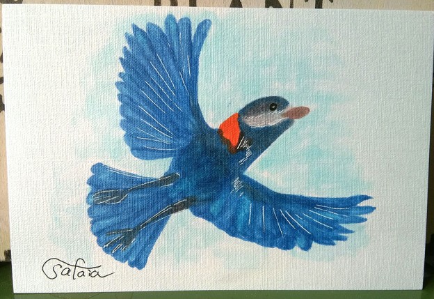 おはようございます♪お忙しい中で訪問頂きどうも有難うございます。一日の大半を絵とダンスに費やしています。それが出来ることがこのうえなく幸せです。家事はあまり得意ではありませんが、気分転換になるので、それも大切なここなのもしれないと思います。夢が叶うまで140 羽を描く posted by (C)みえこ55羽を描くのは本当に難しいです。薄い色を塗るときはある程度修正がききますが、濃い色で羽の流れを入れるときはミスが許されません。これがまだまだ未熟としか言いようがないのです。しかし、描かなければいつまでたっても描けないので、描いています。最近鳥の羽を描くようになってから、鳥のように羽ばたくダンスを踊ってみたいと思うようになりました。こんな鳥にように踊るためには、肩甲骨をはじめとした背中の筋肉を鍛えると同時に、柔軟性を高める必要があります。鳥をイメージして、後ろの斜め上に向かって手を広げます。胸の筋肉も広げないとこのポーズは出来ませんので、かなり難易度が高いです。羽を上手に描けるようになるのが先か?鳥のように踊れるのが先か?いずれにしても、遠い道のりになるでしょう。楽しみながら歩いて行こうと思います。nabegoro さん、今日も素敵なお写真をどうも有り難うございました。いちいち言う必要もないでしょうが、本物とはずいぶん異なります。本物はこちらです。今飛び立ったその瞬間なので、力強く蹴った足も美しかったです。http://photozou.jp/photo/show/270901/260318220夢が叶うまで141 疲労と絵 posted by (C)みえこ55エナガはこれまでに何度も描いてきました。まだまだ完璧には遠いですが、少しずつエナガらしい絵を描けるようになってきました。なので、今日も前回よりはうまく描けるかもしれないと思いながら描きはじめたのですが、どうも、いくら描いておかしくなるばかり。途中であきらめようかなと思いながらも、何とか修正が出来ないものかと試行錯誤を重ねましたがうまく描けませんでした。多分昨日ダンスの練習をかなりやって、その後でカラオケに行き四時間も熱唱したため、かなり疲労しているのだと思います。かなり運動をしても寝れば大抵疲労は取れていることが多く、朝も4時か5時には目覚め、すっきりしていますが、今朝は6時まで寝たにも関わらず、首や肩などがガチガチに固まっている感じがします。一日のほとんどをダンスと絵を描くことに集中しすぎて、おまけにカラオケも全力で歌い続けるという一日は、やはりハードだったかもしれません。得意なひまうさぎでさえ変な感じに…アップするのはどうかなとも思いましたが、記録かたがたやはり通った道を残す意味でアップさせていただきました。うまくいったところよりもうまくいかなかったことこそが、今後につながるので、貴重な一枚だと私は思っています。あれれ?となったときにそれをどう乗り越えて行くのか?そこが一番大事な事ですし、どんな作品でも、そこには自分の情熱がありますから、愛着を感じてしまいます。nabegoro さん、今日も素晴らしい課題を頂きどうも有り難うございました。とても素敵なエナガでした。nabegoro さんが撮ってくださったエナガとともに、とても素敵な時間を過ごす事が出来ました。 http://photozou.jp/photo/show/270901/260330278 ←ポチっとお願いいたします♪